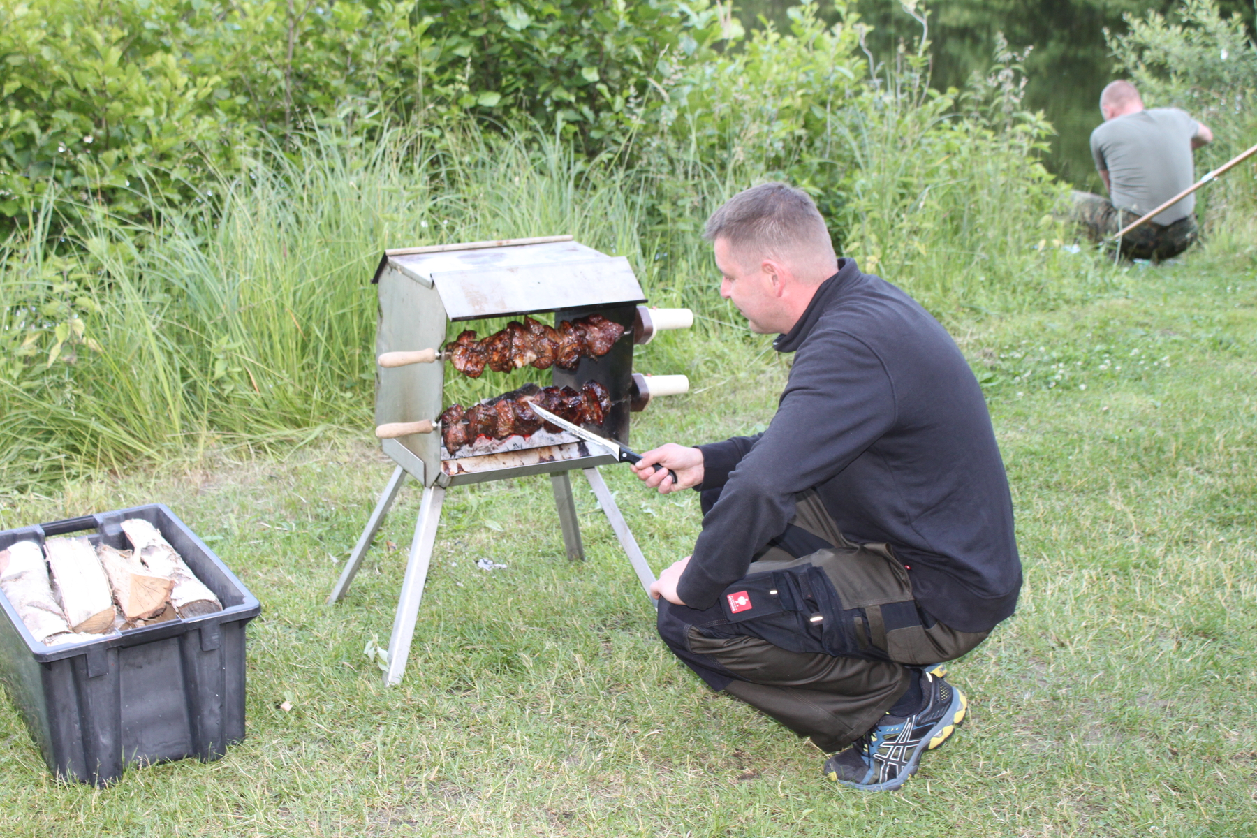 Der Samstag begann mit einem reichhaltigen Frühstück und dem Beschluss, dass wir zum Angeln alle draußen am Wasser bleiben. Also war Nachtangeln angesagt… Sachen gepackt und ab an unser Vereinsgewässer.