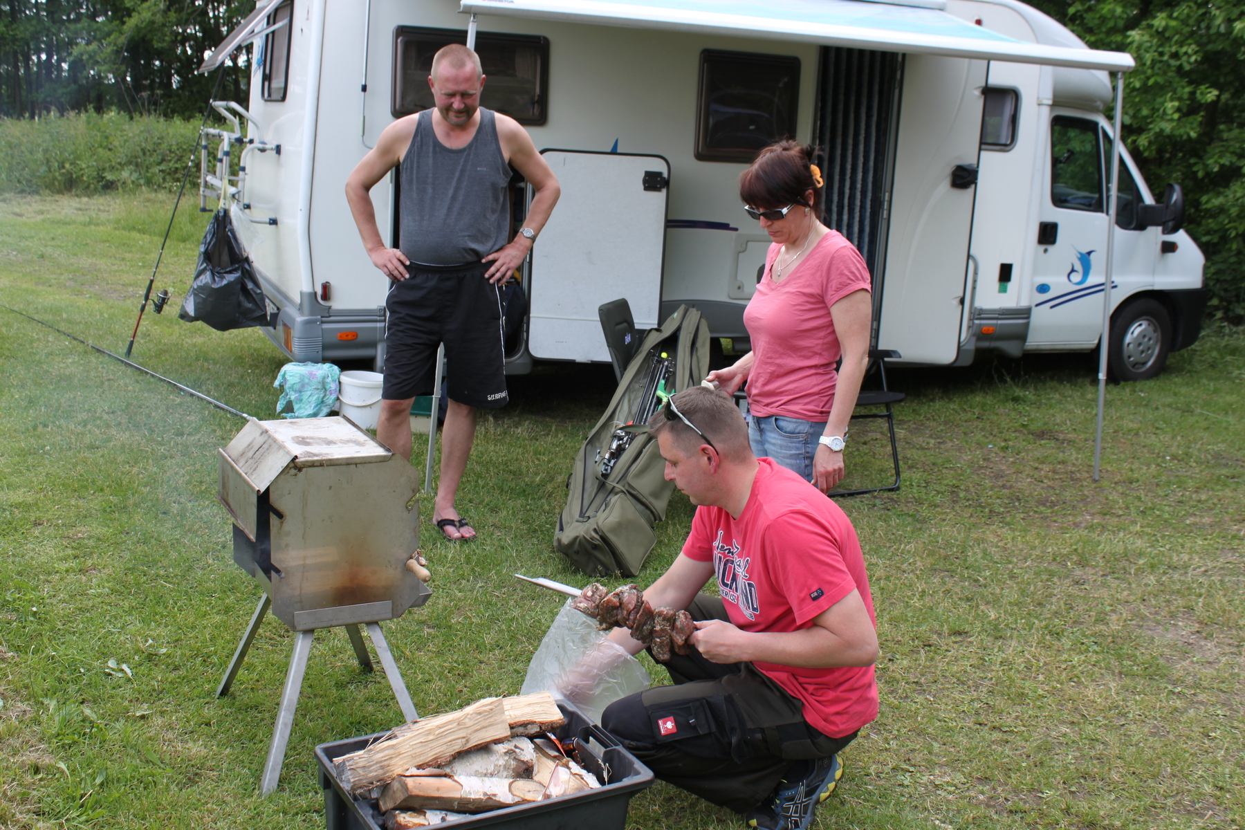 Der Samstag begann mit einem reichhaltigen Frühstück und dem Beschluss, dass wir zum Angeln alle draußen am Wasser bleiben. Also war Nachtangeln angesagt… Sachen gepackt und ab an unser Vereinsgewässer.