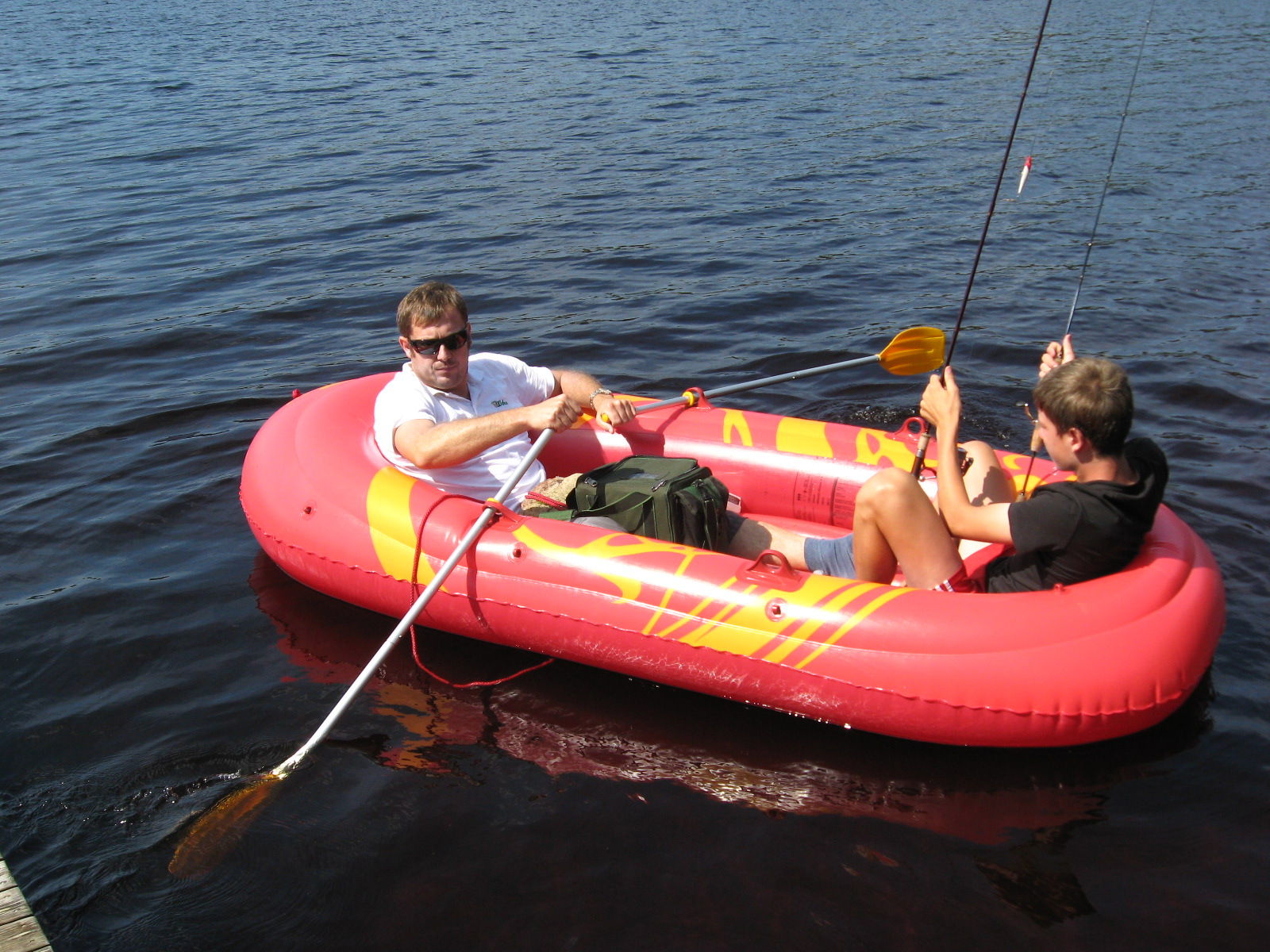 Unsere Fangflotte bestand aus zwei Aldi-Schlauchbooten , sowie einem gemieteteten Ruderboot , welches allerdings stationär an