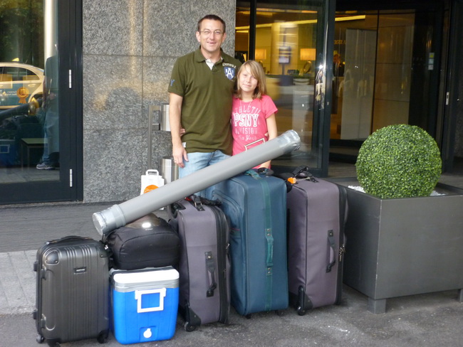 mit dem Auto nach Frankfurt zum Hotel, Gepäck ausgeladen und Fahrzeug auf dem Holiday-Parklatz abgestellt.