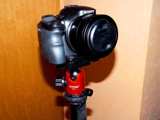 Vielleicht ein zwei Tips. Wenn kein Stativ vorhanden, geht auch folgendes. Einen kleinen, natuerlich etwas groesser als die Kamera, Sack und den mit harten Erbsen befuellen, verschliese und du hast eine tolle stabile Unterlage.