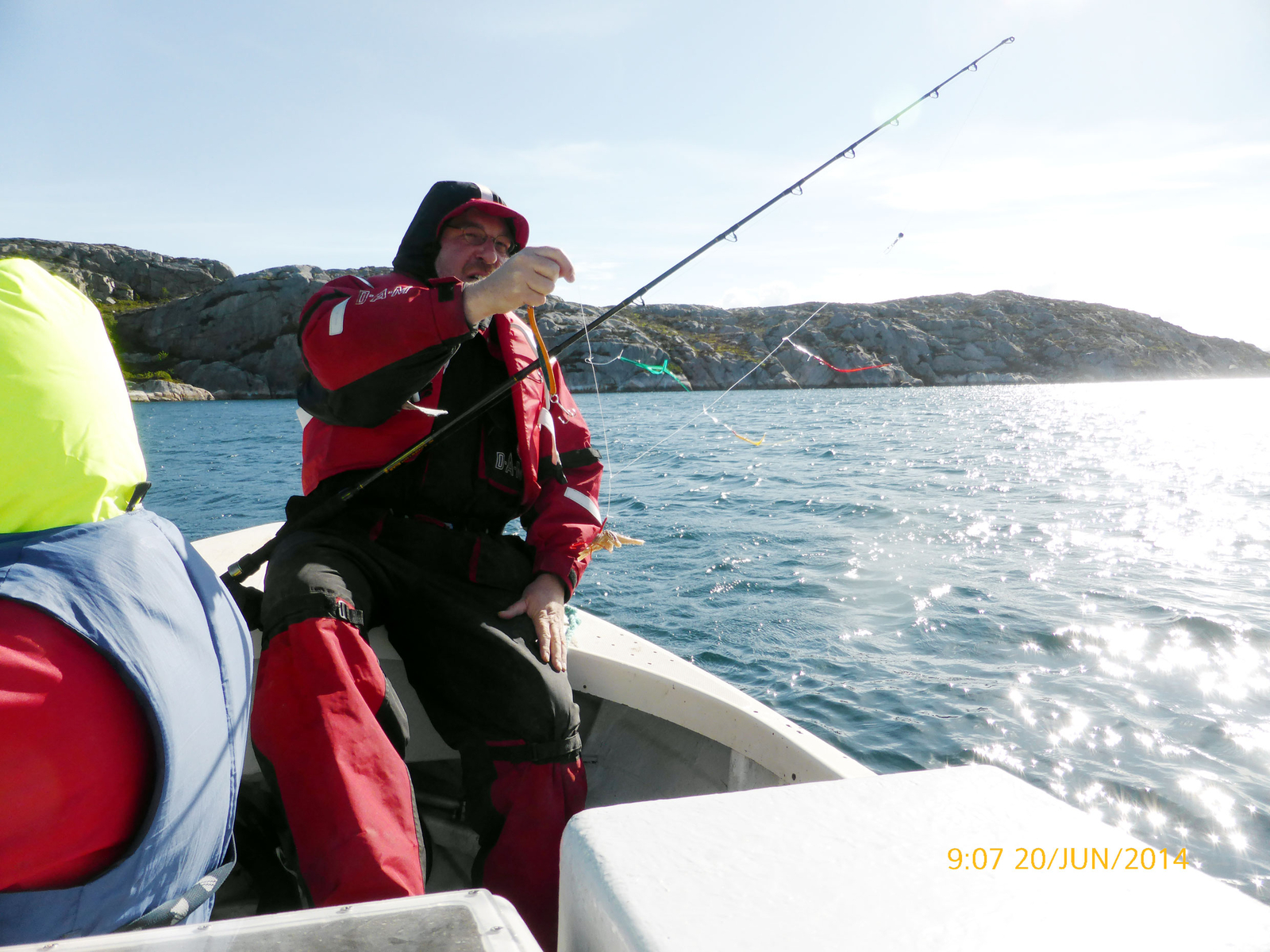 Wir hatten tolles Sonnenwetter ab bis auf eine Ausnahme von 4 Stunden beständig starken Wind, so das ein Angeln außerhalb der Schären nicht möglich war. In den Schären waren die Erfolge eher sehr mager. Man mußte jeden Fisch lange suchen und dazu dann nur kleine Exemplare von Köhlern und Dorschen. Einzig eine Ausfahrt außerhalb der Schären von ca. 4 h war möglich und wir haben da auch sofort gut gefangen. Am nächsten Tag versucten wir es wieder bei recht unruhiger See und an den Stellen, wo Tags zuvor noch Fisch war ging nichts, obwohl im Echo Fisch zu sehen war. Für den nächsten Tag war Sturm mit 22m/s angesagt, deshalb wollen die Fische wohl auch nicht mehr.