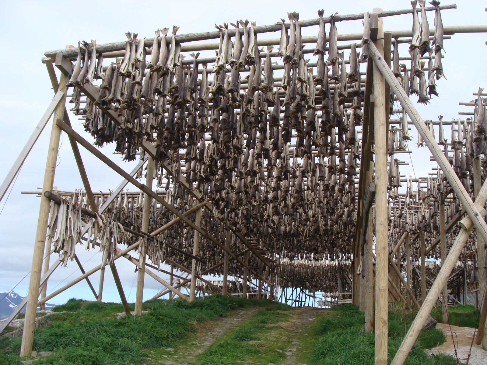 Wie man sieht waren die Fischer auch fleissig und haben Fische gefangen, man kann die Geruste kaum zahlen, wo die ihren Fisch trocknen, Dorsch, Leng und Schellfisch konnte ich erkennen.Die Bilder wurden in Henningsvaer aufgenommen.