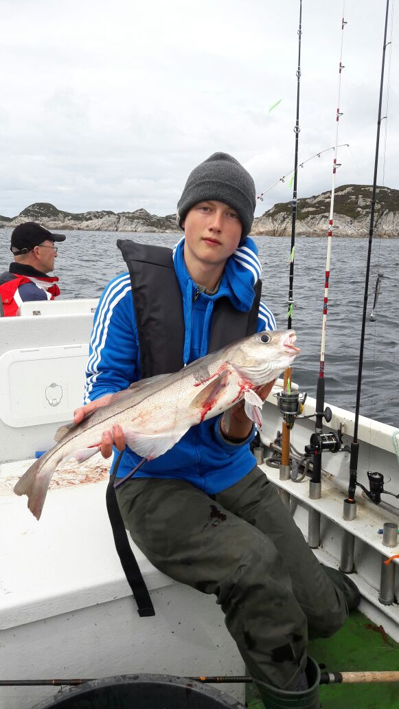 Nachdem er ein paar Pollacks und einen Seehecht gefangen hatte haben wir das Angeln eingestellt.