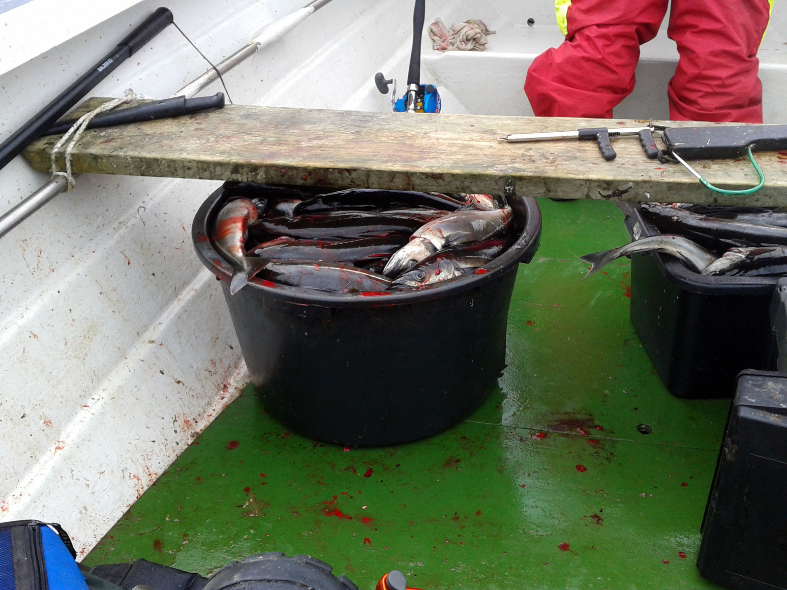 morgen Früh fahren wir zur Lachsfarm im Nachbarfjord. Wir waren gestern auch dort und haben dort sehr gut gefangen. Die Seelachse haben dort ein dort zur