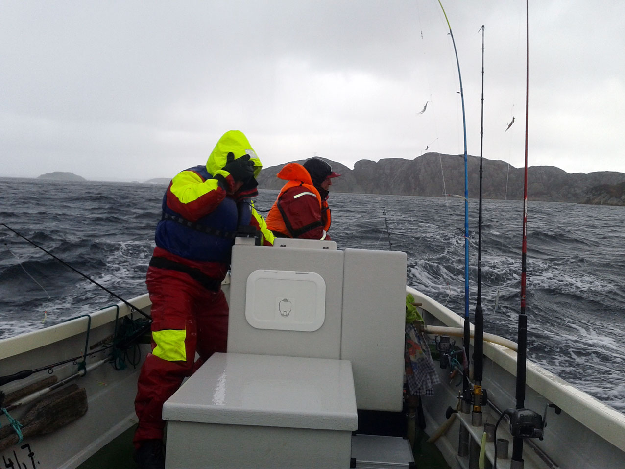 Heute morgen hat es mal nicht geregnet und der Wind kam aus süd-west. Wir haben einen versuch unternommen um Slateroy zu fahren und die Unterwasserberge vor dem hinteren Fjordausgang zu befischen. Die Überlegung war, wenn der Wind noch zunimmt, dann wuurden wir wenigstens mit der Drift in den Fjord gedrückt uund so sicher zurück kommen. Wir haben die Aktion dann auf Höhe Slateroy abgebrochen, da es doch zu heftig war. Nur die russischen Freunde aus dem Nebenhäusern haben ihr Leben für ein paar Fische riskiert*eek* Die Cottbuser im Nebenhaus haben mir dann im Filetierhaus erzählt, dass sie ebenfalls diese Aktion aus Sicherheitsgründen abgebrochen haben und zurück sind.