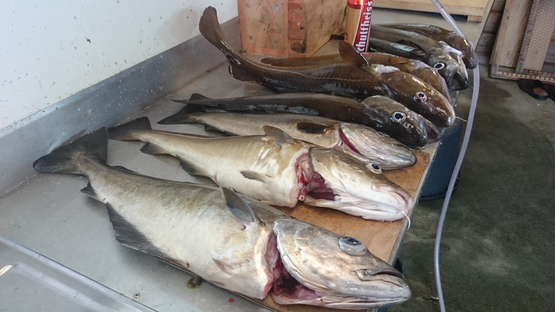 Die Angelei ist so La La, Köhlerschwärme da - aber keine Dorsche drunter. Hab schon gedacht wir sind zu blöd, aber den anderen geht es nicht besser. Gute Pollacks kommen aber auf den Filetiertisch