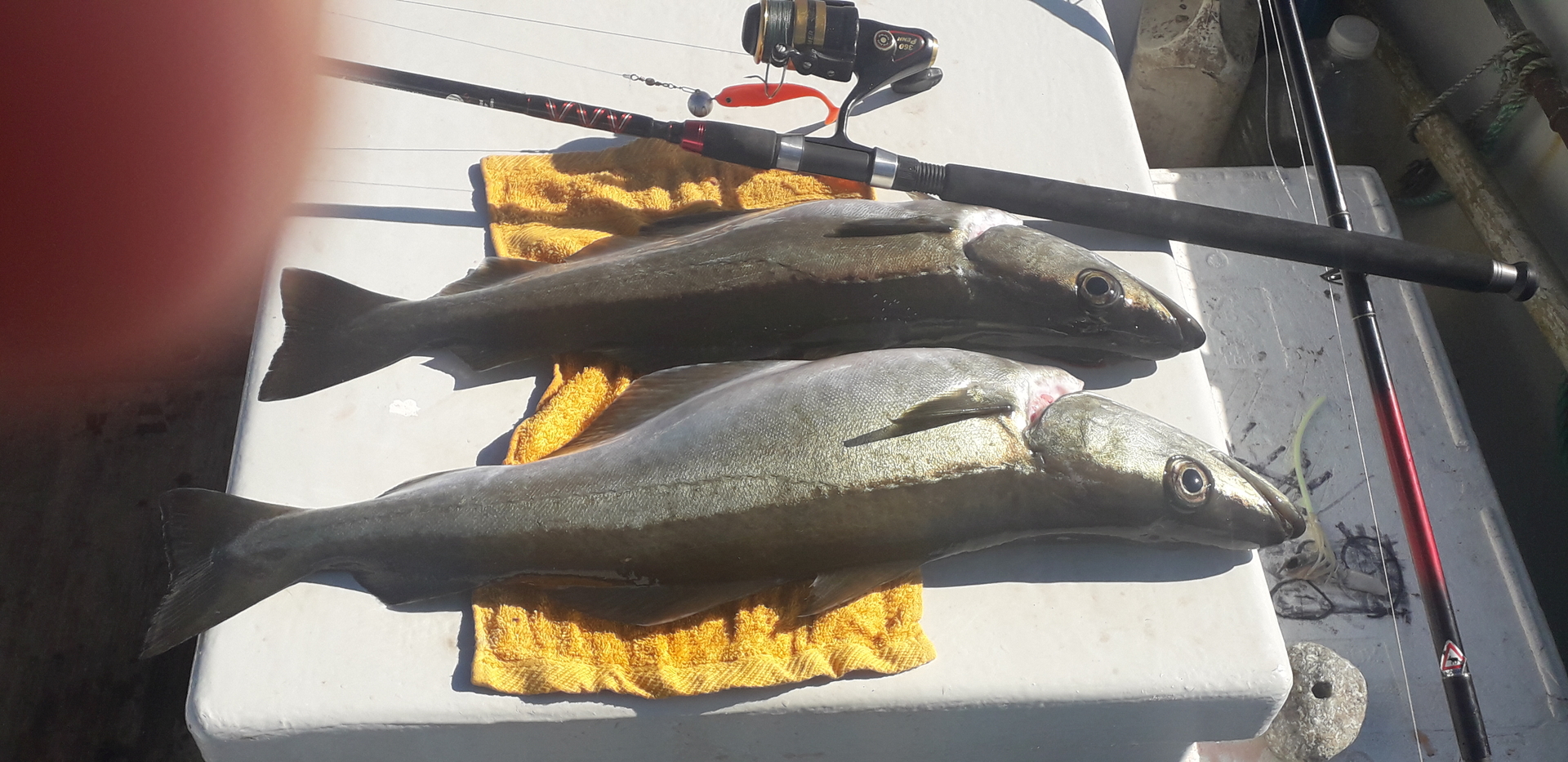Konnte Gestern wieder 2 gute Polack mitnehmen. Auf der leichten Rute ein Mordsspass , Heute versuche ich es mal, mit nur 24 gramm Wurfgewicht Rute mal sehen ob die das Überlebt. Ab Morgen wird das Wetter schlechter und das soll die ganze Woche dann so bleiben, wir werden sehen.