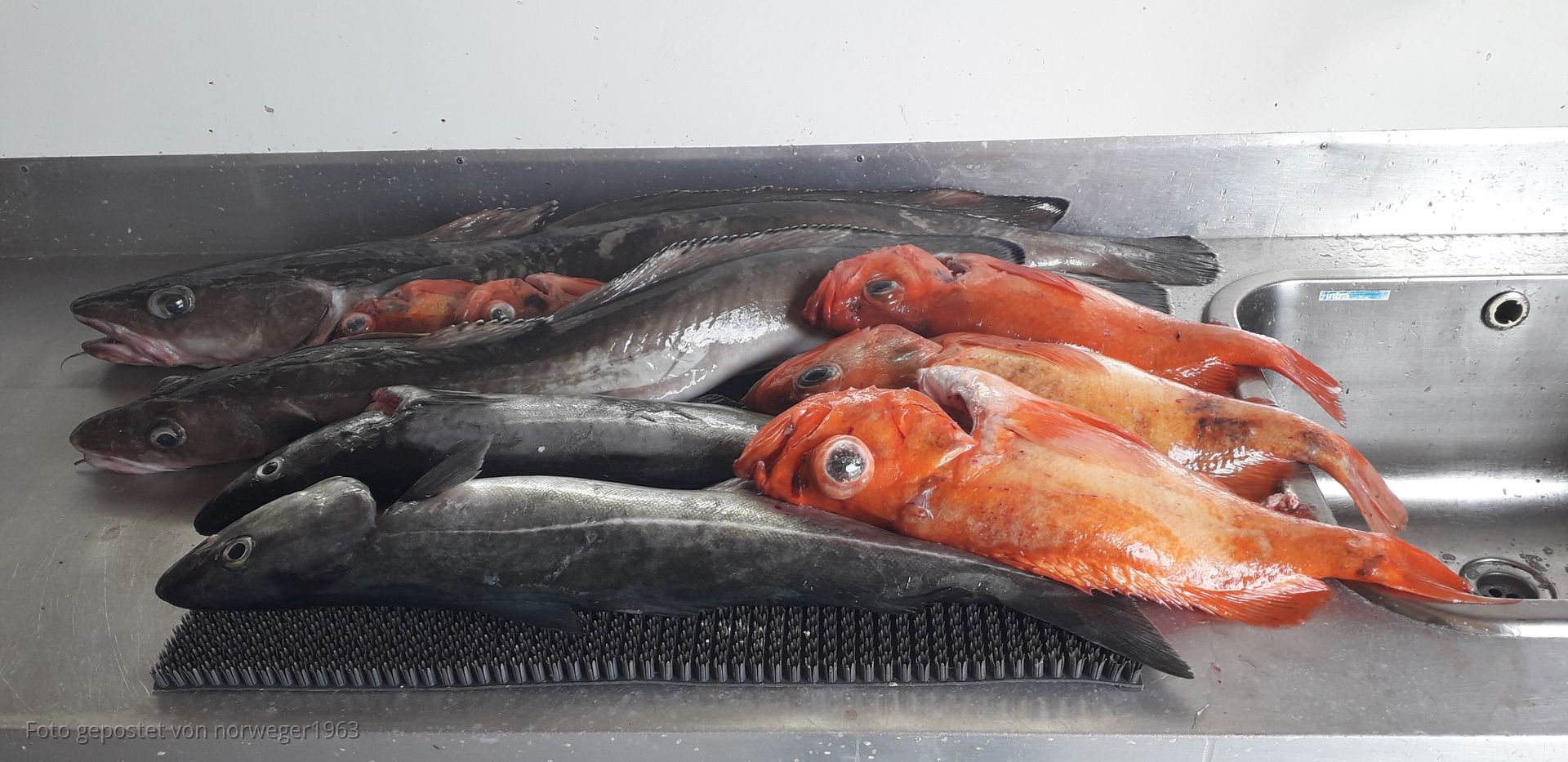 Am Freitag sind alte Bekannte angereist , leider sind die Wetteraussichten nicht so toll, Gestern hatten wir schon schön am Ausfuhrlimit gearbeitet, 11 Leng bis einen Meter dazu schöne Dorsche und Lumb, Heute Morgen um fünf waren wir wieder unterwegs, um halb 8 habe ich abgebrochen, die beiden haben noch bis halb 9 weitergemacht, dann hat auch bei ihnen die Vernunft gesiegt. Zu dritt hatten wir 6 Leng und 2 Lumb. Leng 150cm 141cm 130 und 128 cm die Kleinen 110 und 96. Ein Lumb von 85 und einen Säugling. Das Kontingent dürft voll sein.
