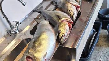 Dann mal wieder Neues aus Brandasund, nach dem bescheidenen Wetter, inbegriffen Sturm, war es Heute fast ruhig, Wellen waren hoch aber langgezogen ,kleine Seelachse standen überall auf den Unterwasserbergen .aber die guten Fische sind noch selten. Wir hatten Seelachs, Dorsch Polack und Schellfisch, und das bei Sonnenschein und ganz wenig Wind. die Fische sind keine Riesen aber ok. Morgen bläst es wieder. Nächste Woche soll dann die Besserung kommen.