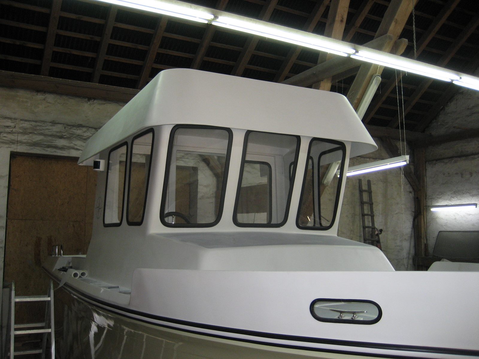 Nun, wo der Arbeitsstand dem endgültigen optischen Eindruck schon sehr nahe kommt, muß man das Boot schon als gelungen bezeichnen. Eine Frage bleibt für mich offen: wenn Du vor zum Bug willst, hältst Du Dich dann am Dach fest? Oder fehlt die Reeling noch wegen dem Fenstereinbau?