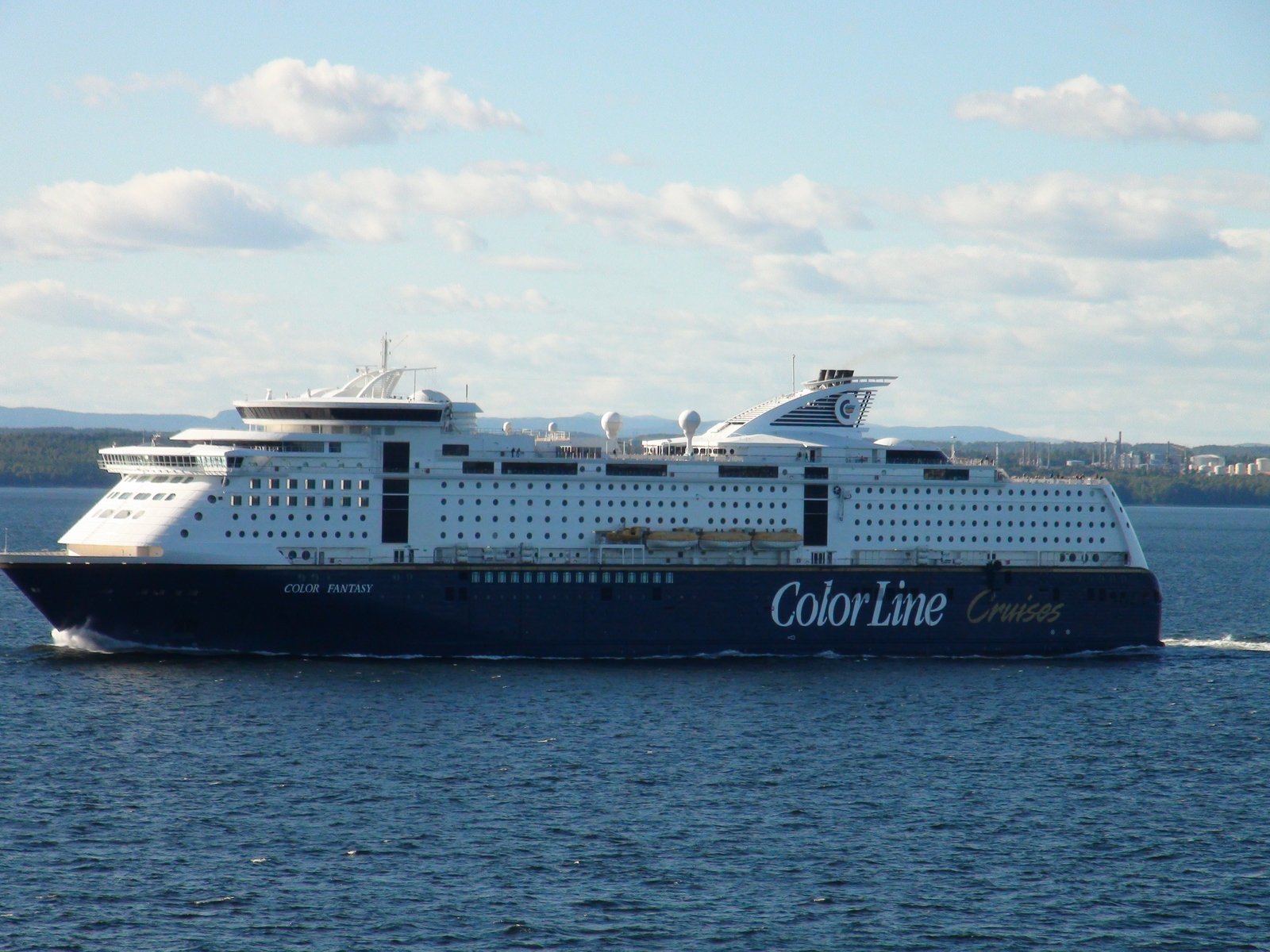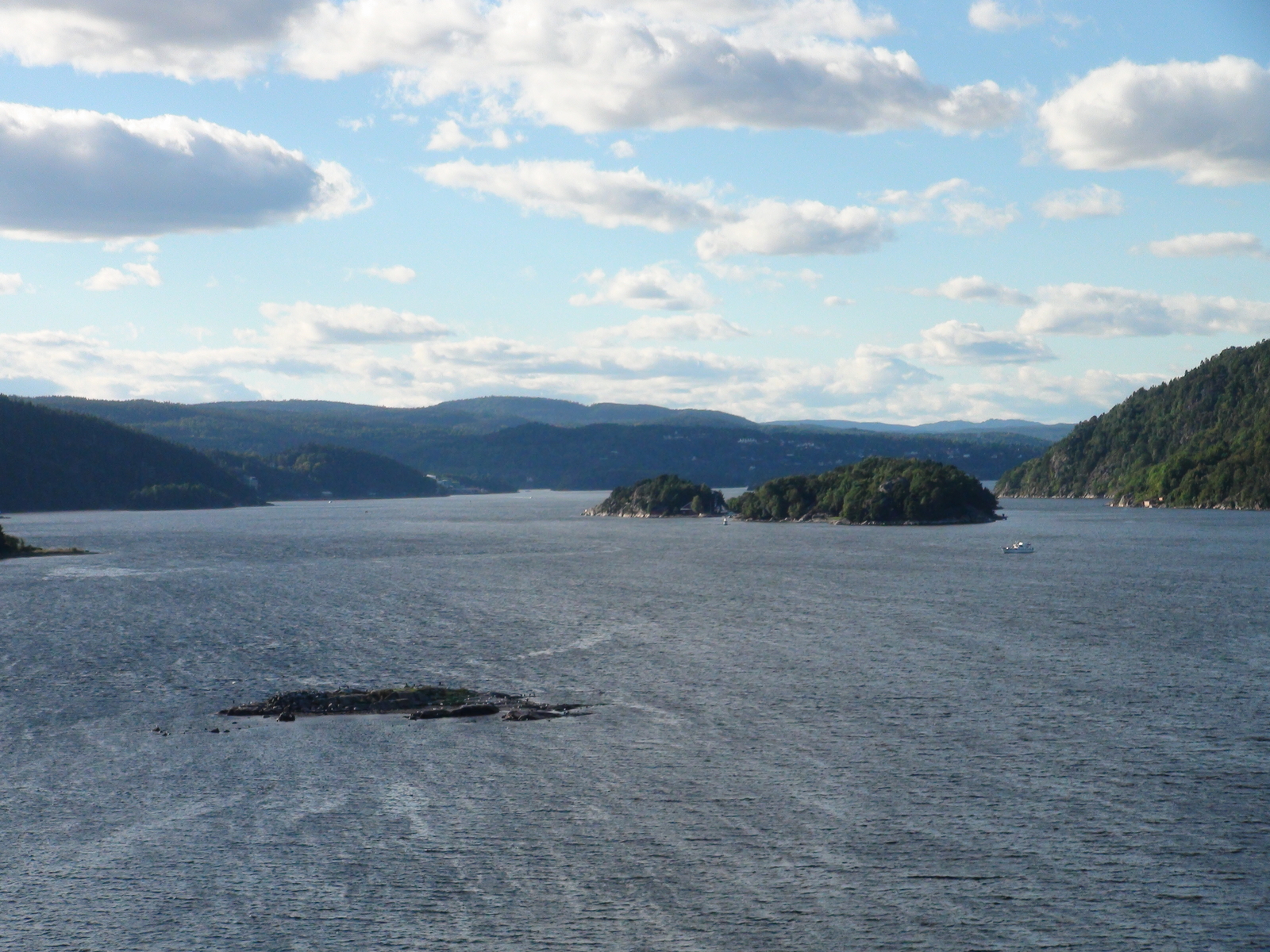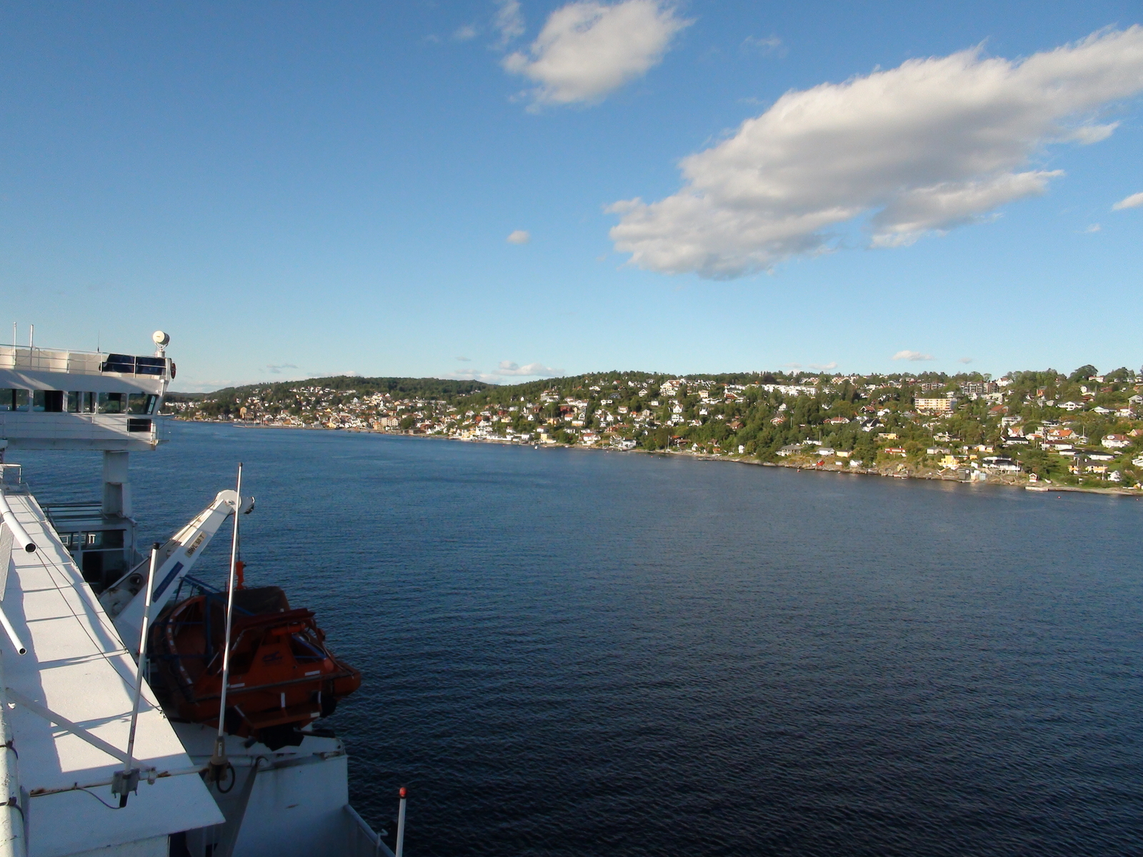 Am frühen Nachmittag standen wir wieder auf und gingen raus auf Deck.Mittlerweile lag die Fähre ruhiger im Wasser und draußen schien die Sonne vom Himmel.Wir gingen aufs Deck 10,das Sonnendeck und setzten uns.Es war ganz leer da oben.Und so genossen wir auch die Fahrt durch den Oslofjord,der immer wieder beeindruckend ist.Uns kamen Kreuzfahrtschiffe entgegen,z.B.die Costa Luminosa und irgendeine der MSC Schiffe,aber auch die Color Fantasy schipperte vorbei.Oslo begrüßte uns mit herrlichstem Sonnenschein und im Hafen lag die "Mein Schiff 2".Wir mußten direkt an ihr vorbei fahren,wirkt schon gewaltig.Da die Fähre gegen 18:30 Uhr in Oslo ankam und wir an den Sognefjord wollten,haben wir uns auf den Weg zu unserer vorher gebuchten Zwischenübernachtung gemacht. -