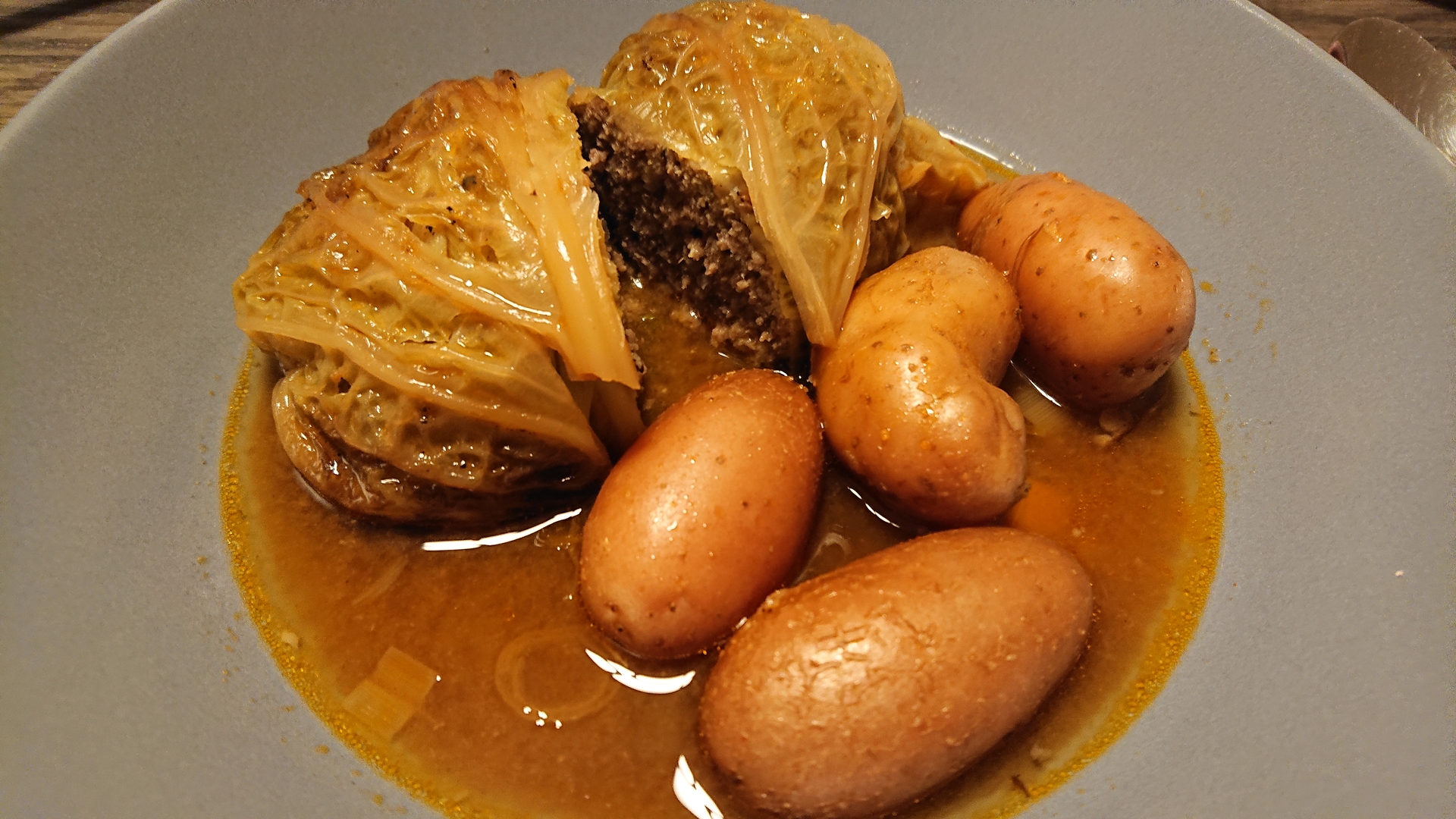 eigentlich sollte es ja was gaaaanz ähnliches geben...rotkraut, klöße und RINDsrouladen...