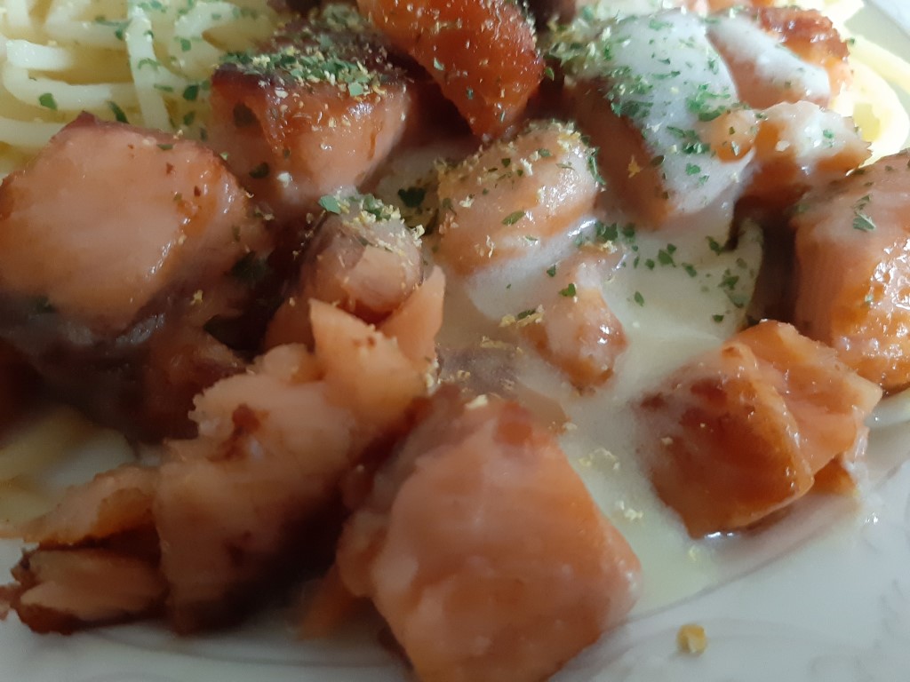 Lachs mit Spaghetti, Zitronen-Buttersauce und Pesto Genovese...