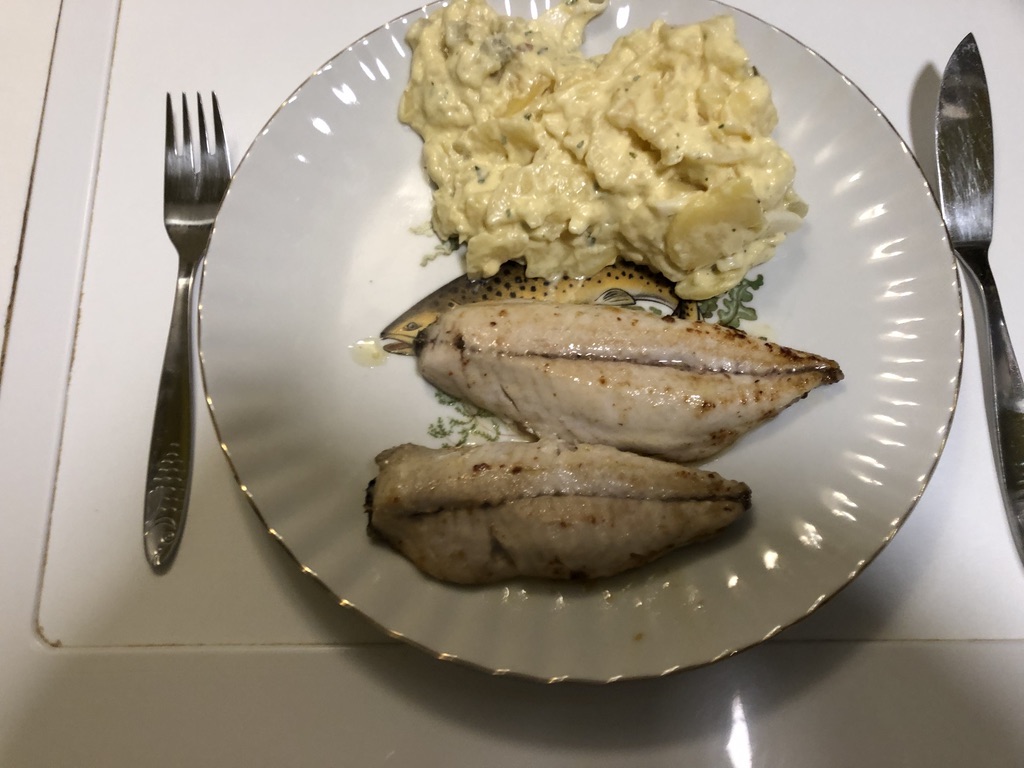 Heute durfte der Kabeljauw dann die Pfanne beglücken. Herrlich, selten einen leckereren gegessen, schneeweiß das Fleisch.