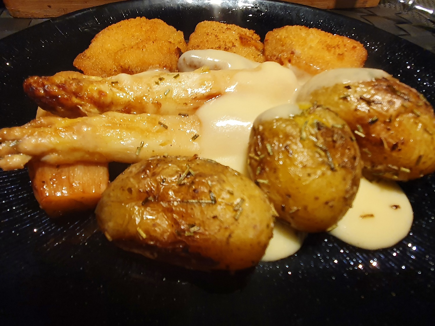 gegrillter spargel, zwillinge, gefüllte ministeaks und rolfes-lieblings-zitronenbuttersoße