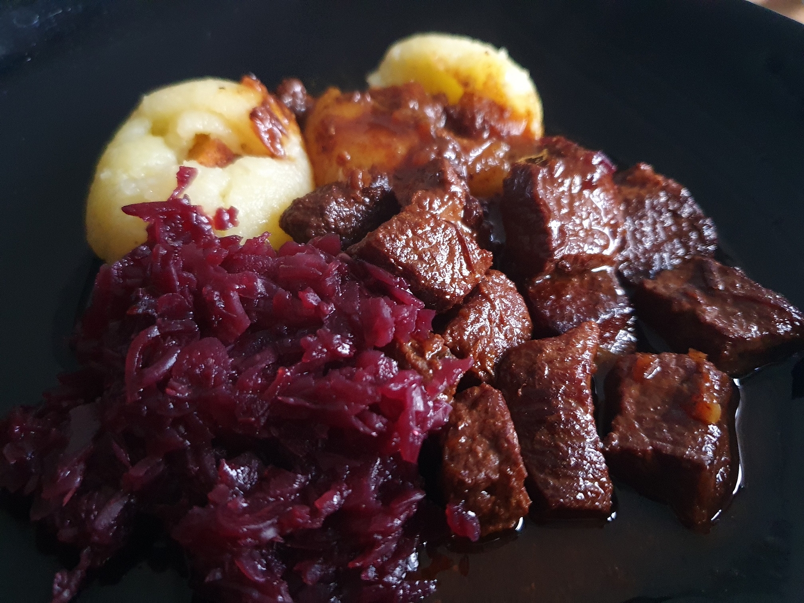 Ich hatte mich für Hefekloßburger mit Entenbrust, Süßkartoffelpommes und Salat entschieden. War garnichtmal so schlecht.