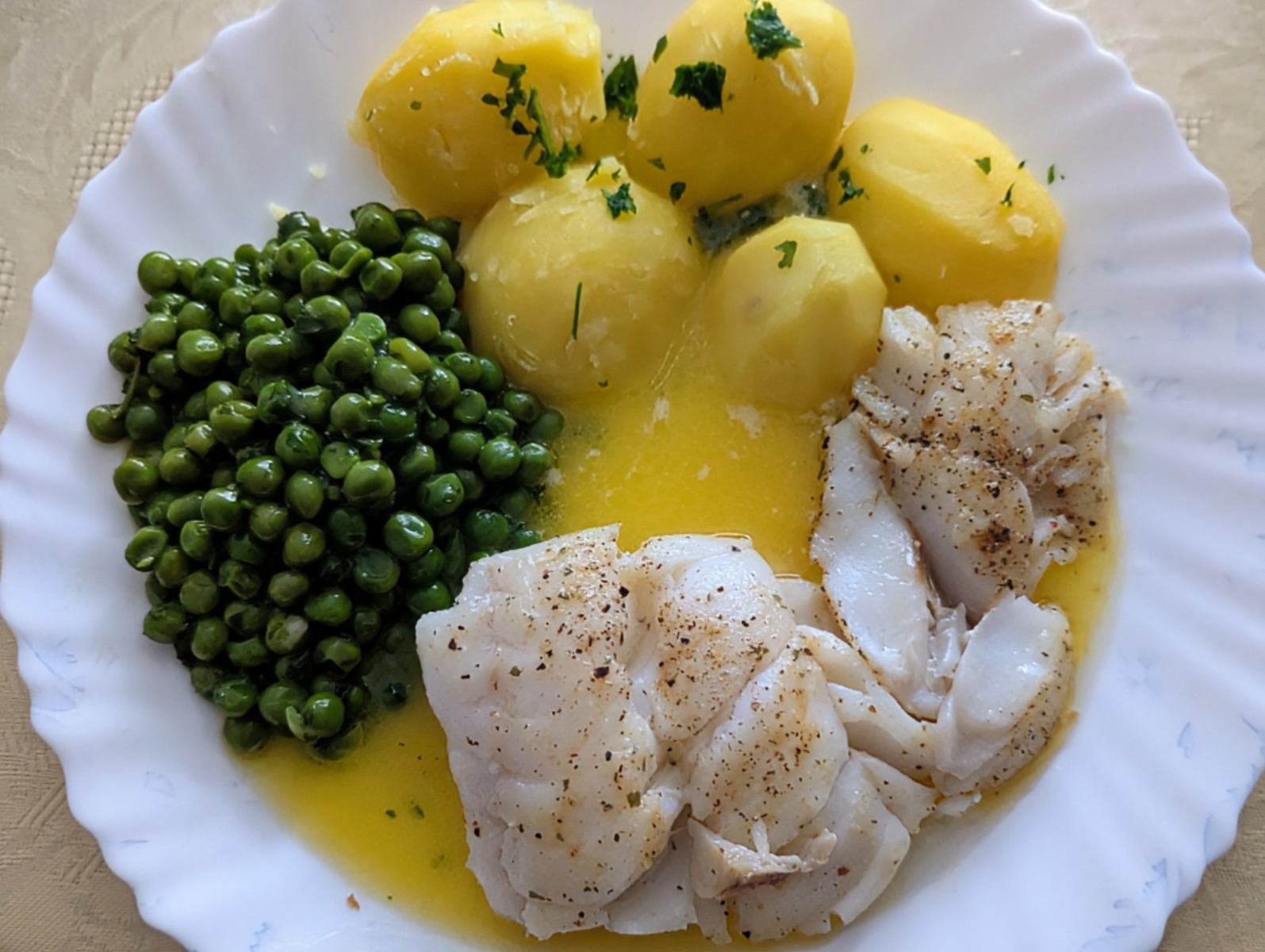 Heute hatten wir Appetit auf Dorsch. Dazu selbstgemachte Zitronen-Buttersoße und Zubehör wie wir es mögen. Es war ein Fest.