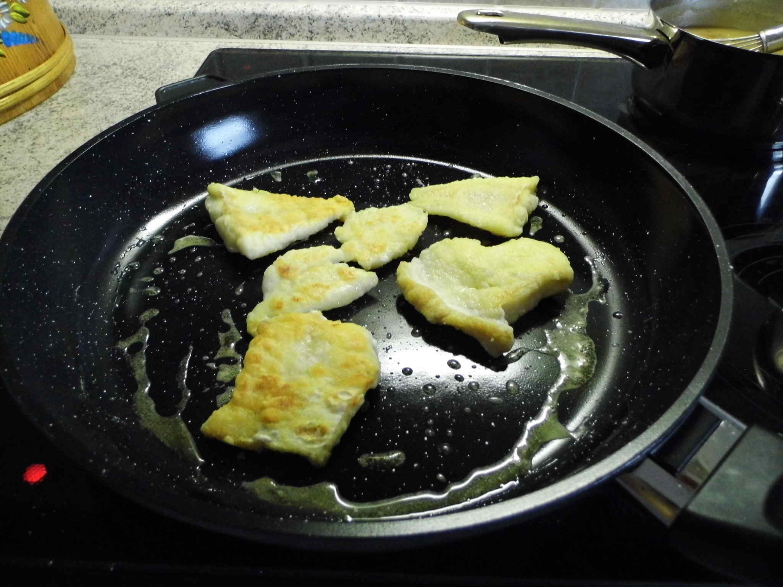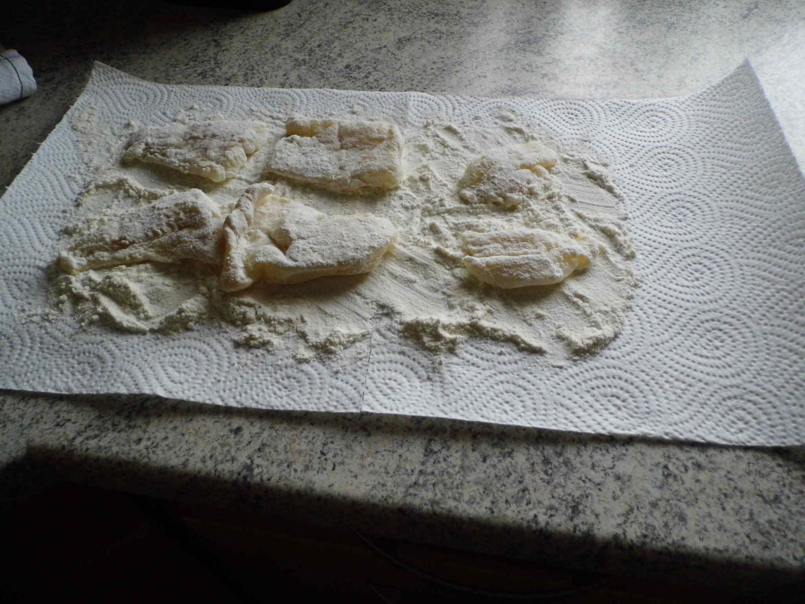 Den Dorsch mit wenig Aufwand gewürzt und mehliert und abgebraten.