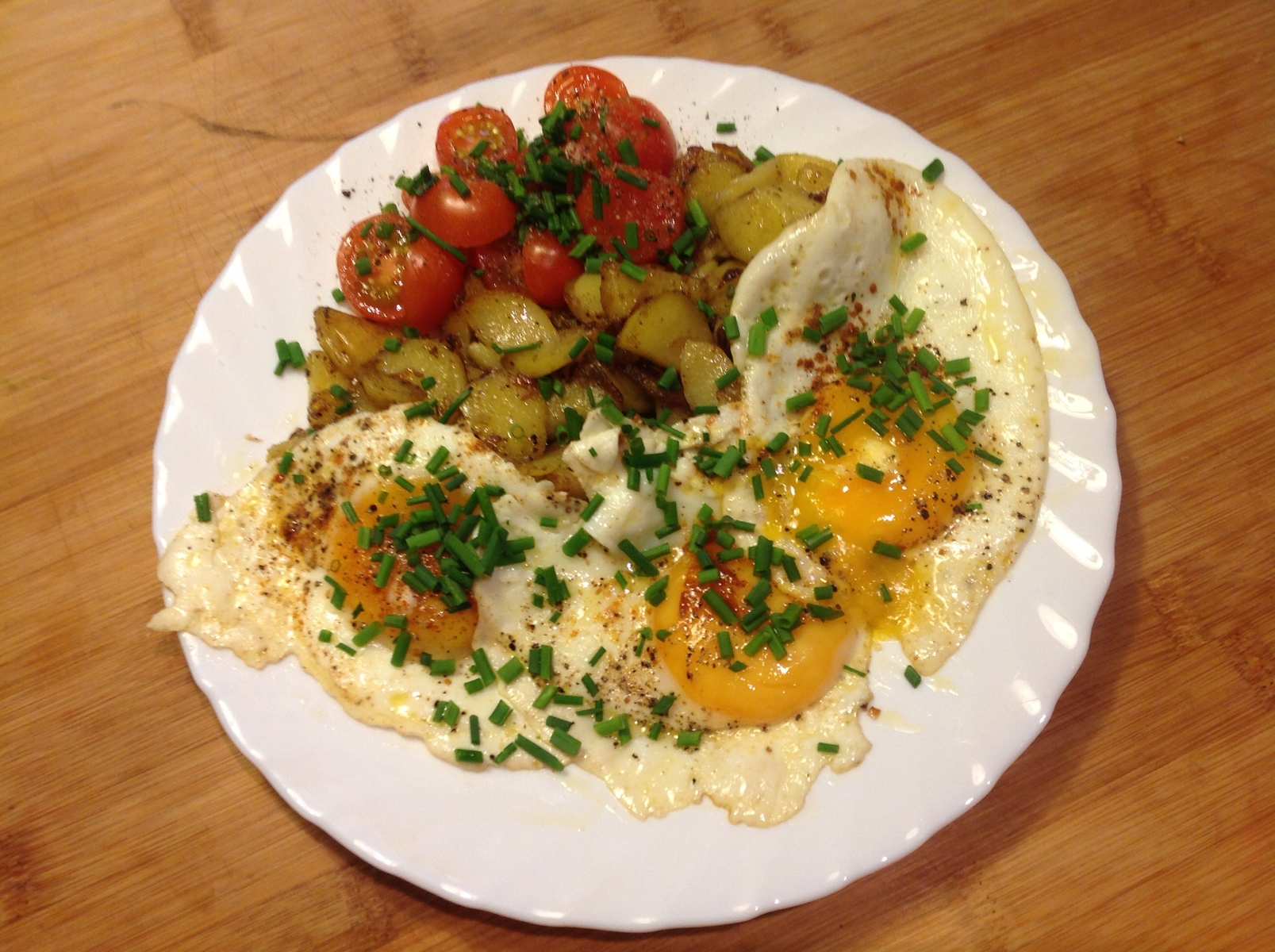 Toni wiedermal allein zu Haus...also Kartoffeln und Eier gekocht, eine Senfsoße gezaubert und fertig war das Leckerlie...LC:)