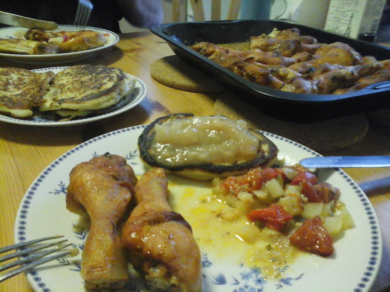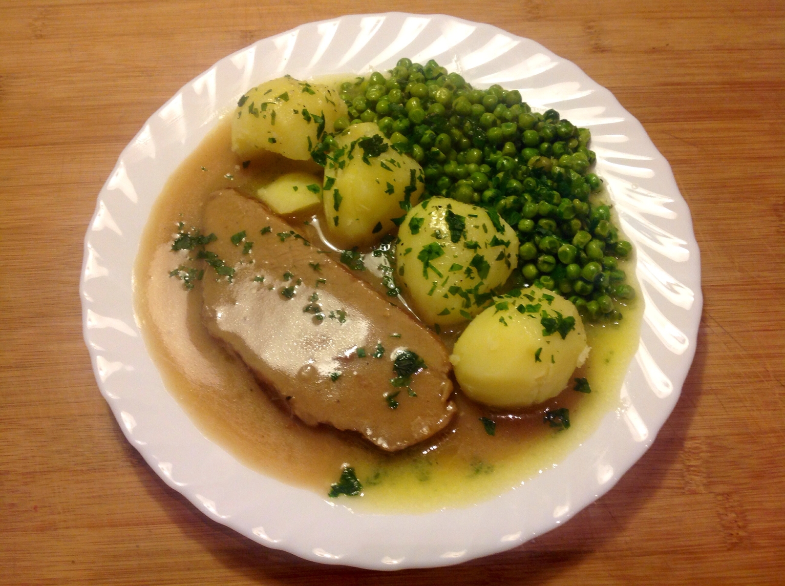 Schweinsbraten, dazu Kartoffeln und Erbsen aus dem eigenen Garten...LC:)