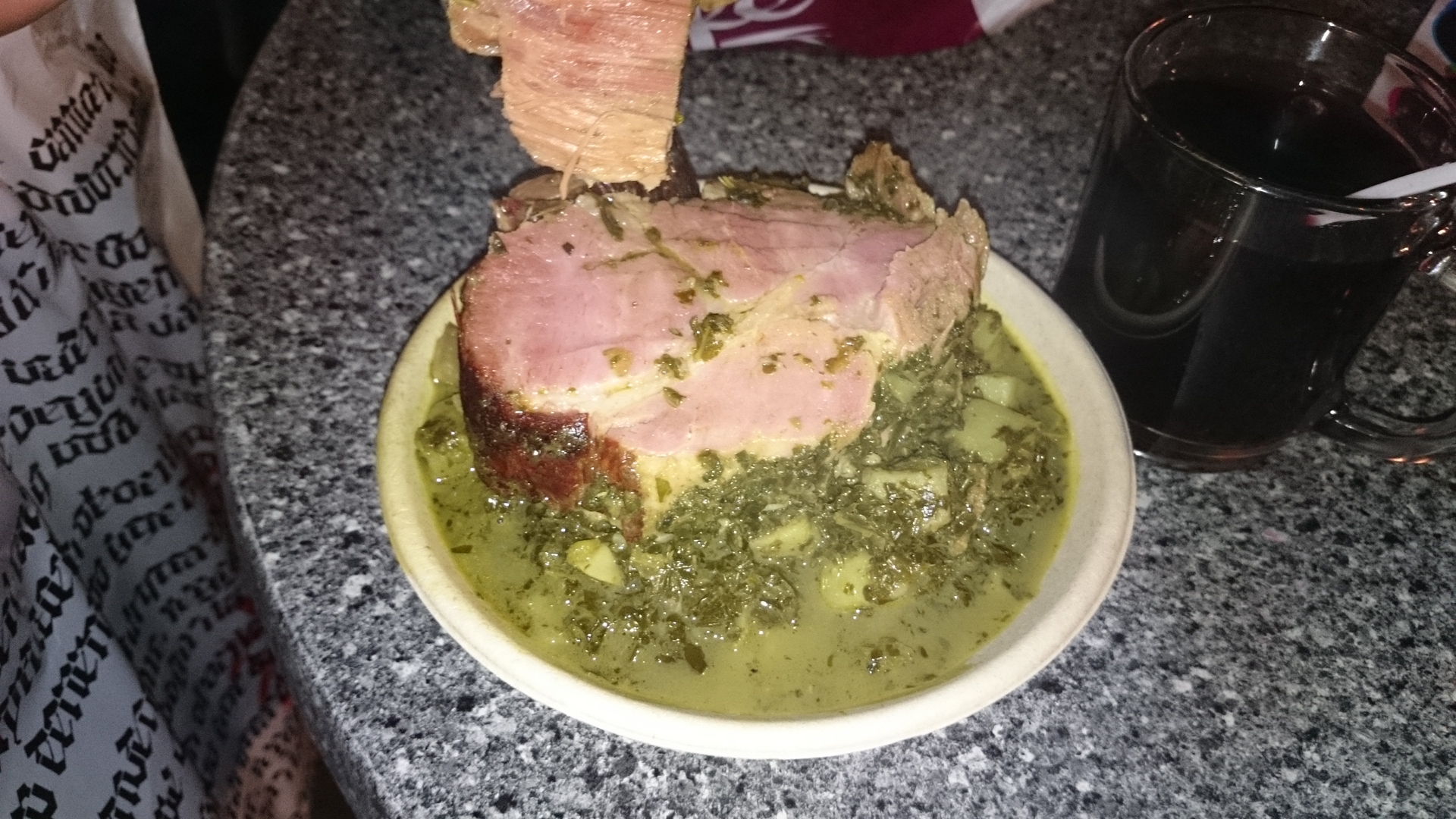 Hausmannskost aus der großen Pfanne gab es gestern auf dem Weihnachtsmarkt : Grünkohl mit Kassler, hat super geschmeckt