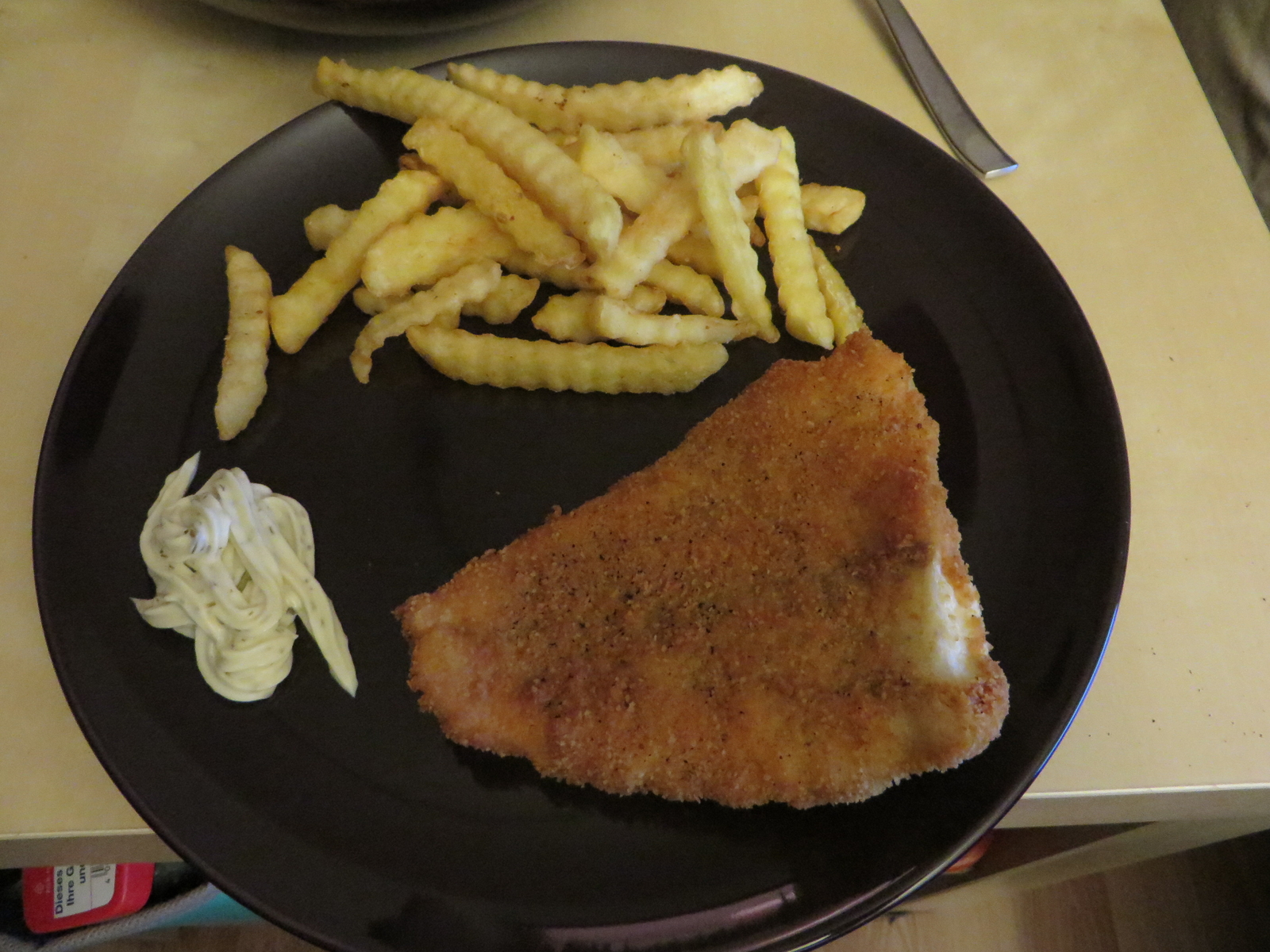 fritierter pollack mit pommes und remoulade ,ich liebe das LC:)