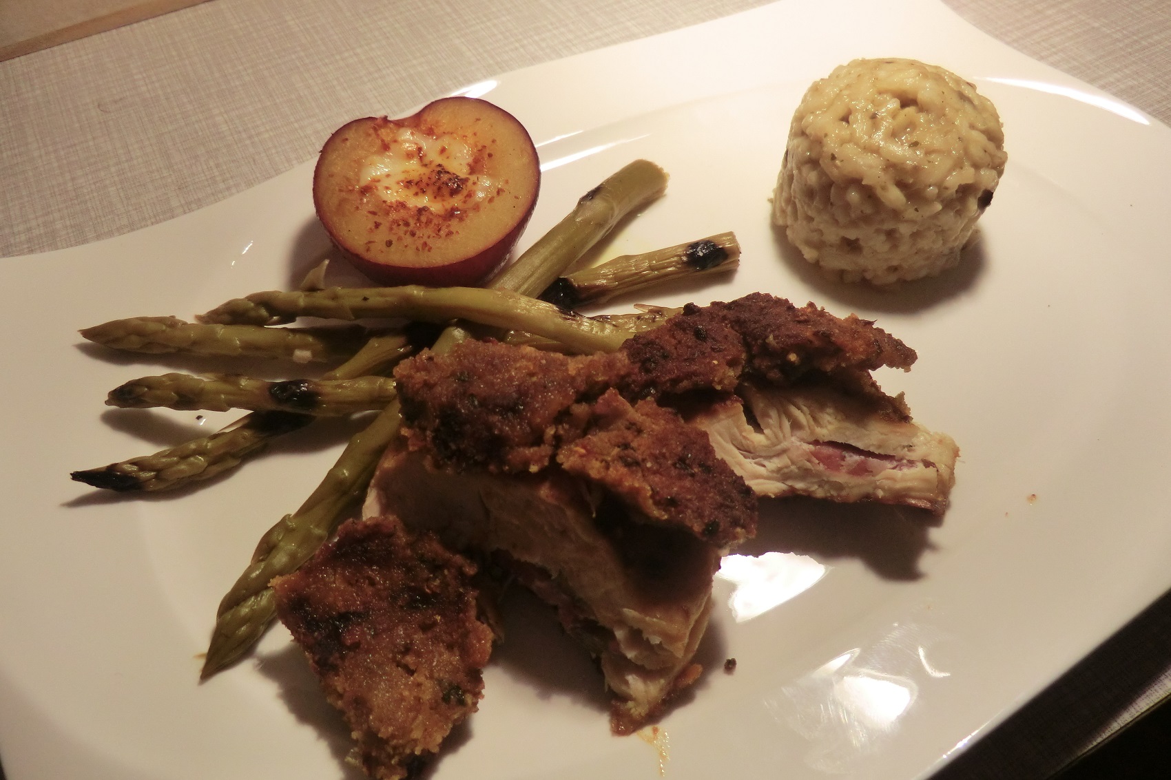 dazu ein steinpilzrisotto und gegrillter grüner spargel