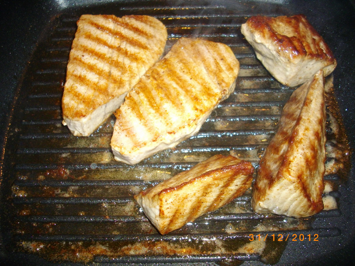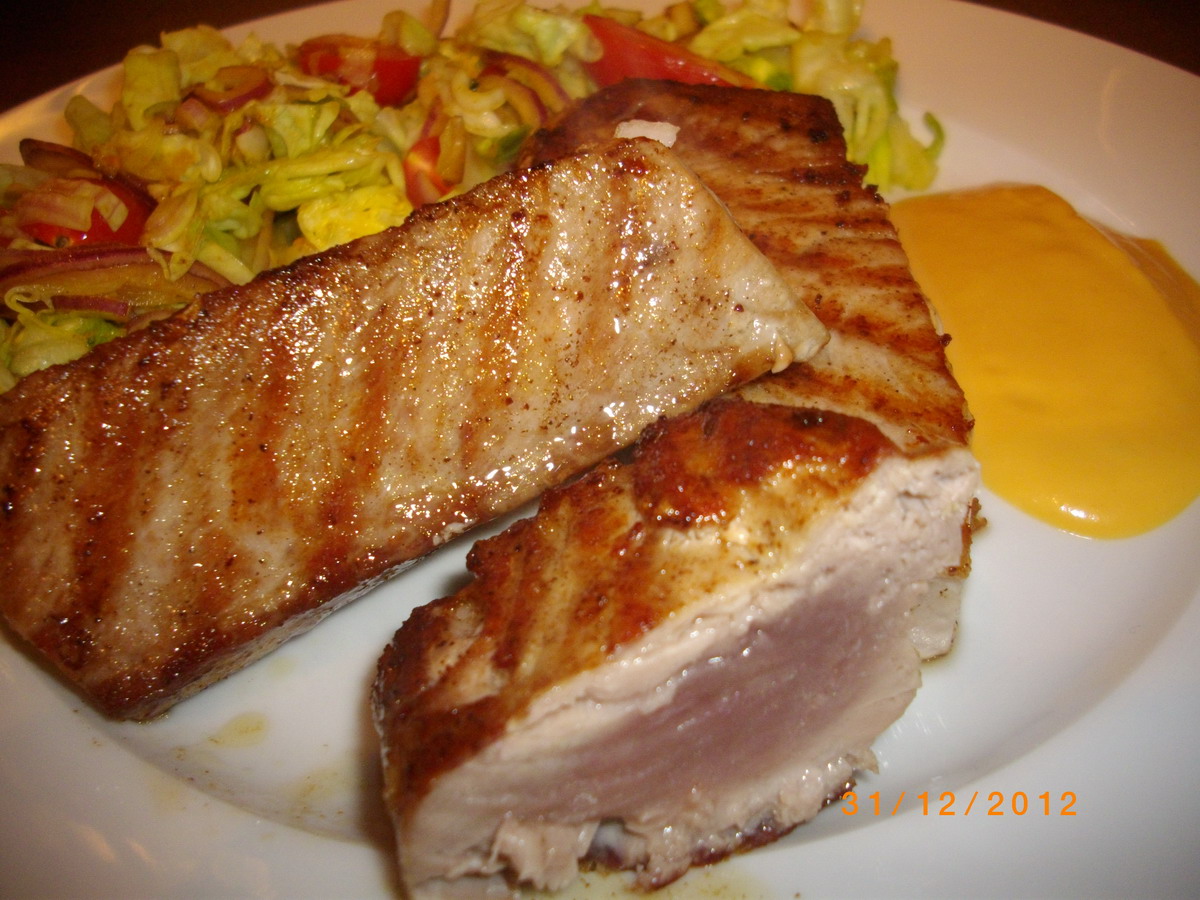 Thunfischsteaks mit Salat an Orangen-senfsoße.........