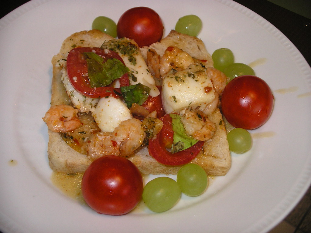 und mit Cocktailtomaten und Träubchen aufgetischt!