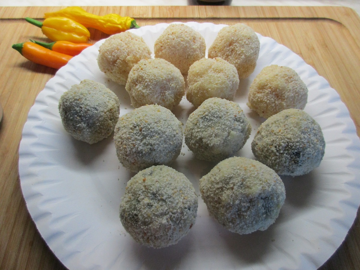 eine röstitalermische delaboriert und tlw. mit majoran, pinienkernen und chillieflocken vermengt, in semmelgebrösel gewälzt und in öl ausgebacken