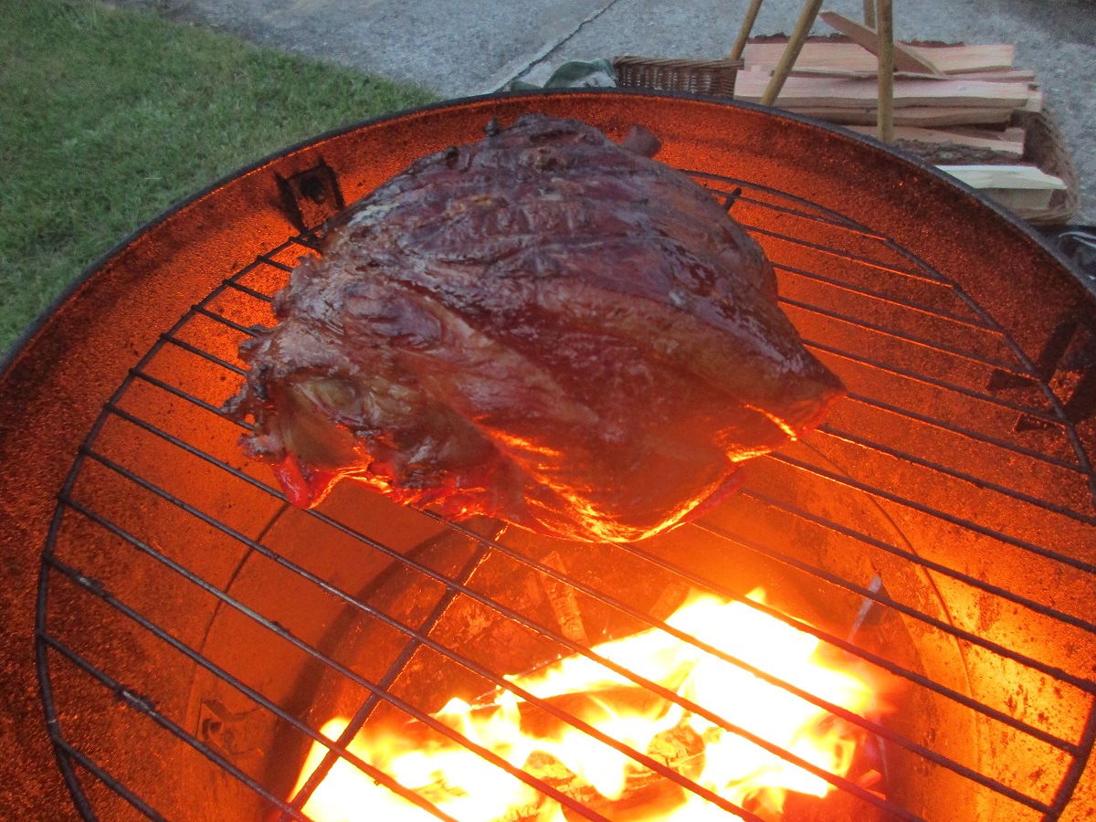 das pökeleisbein vorgekocht und dann auf r2d2 mit farbe versorgt und leicht angeräuchert......... -