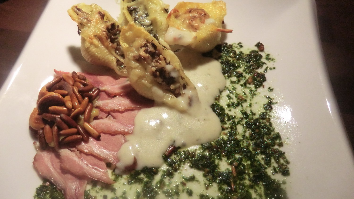 nudeln mit dies, das und jenes gefüllt samt selbstgemachtem pesto......