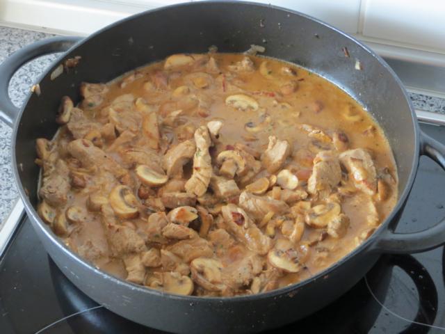 Bei uns gab es heute Züricher Geschnetzeltes auf Spätzle mit einem Glas trockenem Wasser dazu. ![]()