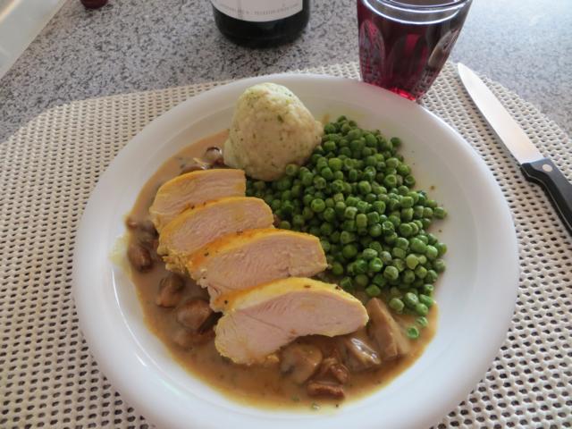 Heute gab es mal wieder Hähnchenbrust auf Pilzspiegel mit Semmelnknödeln und Schrotkugelerbsen. LC:):biglaugh: