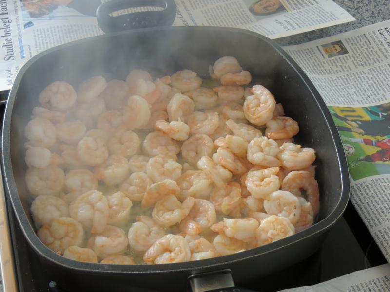 bei mir kommen 6 Knobi@Obi bei den Scampis mit rein, und zum Schluss wird mit Pernot abgeschmeckt. Das gibt so eine leichte Lakritzenote.