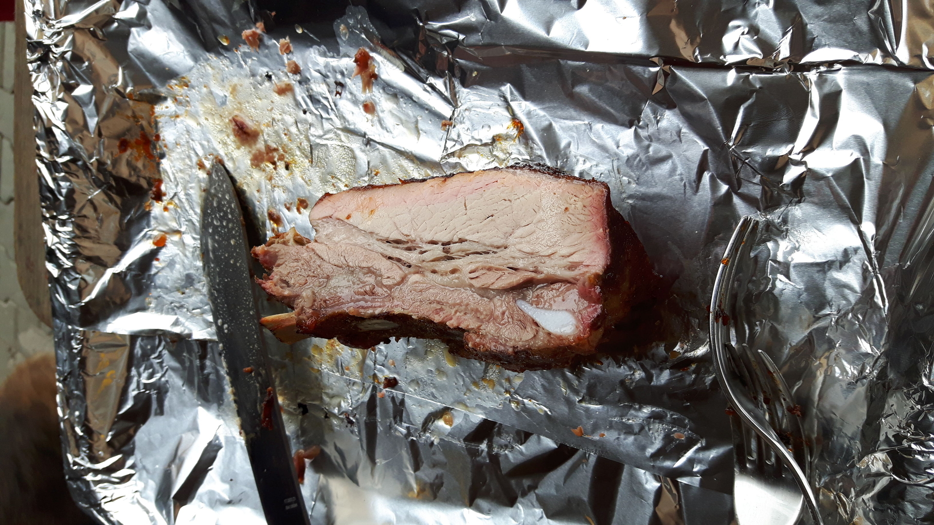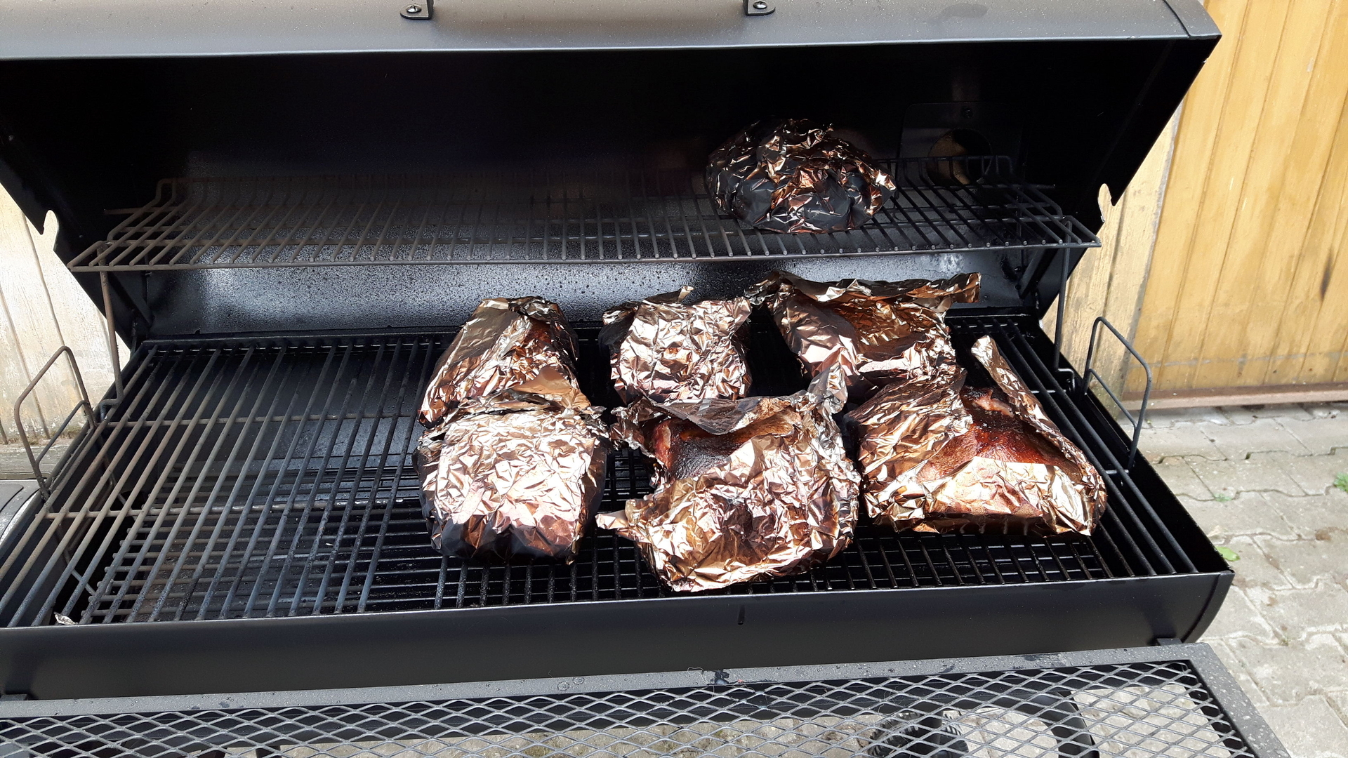 in ermangelung eines smokers gab es den "abgewandelten mutzbraten" vom r2d2 - birke wurde durch buche ersetzt..............#zwinker2* und normales s-fleisch durch s-pökelfleisch