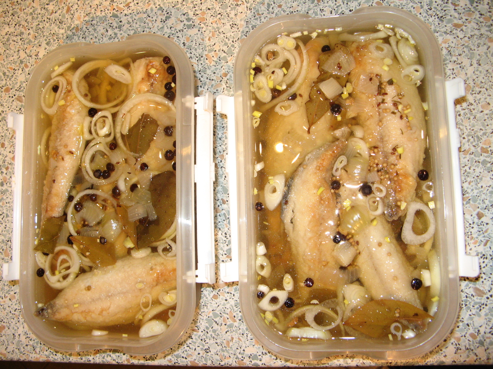 Da bei uns heute Feiertag ist, habe ich so gedacht.....lege mal ein paar Makrelenfilet süßsauer ein.....also gestern 14 Filets aus unserem Septemberurlaub auf Ombo aufgetaut, heute gebraten und dann mit einem leckeren Sud übergossen. Sonntag gibt es dann die erste Verkostung mit Katopü als Beilage........6 Filets waren von unseren großen "Hausbuchtmakrelen" ..........richtige Klopper :baby: