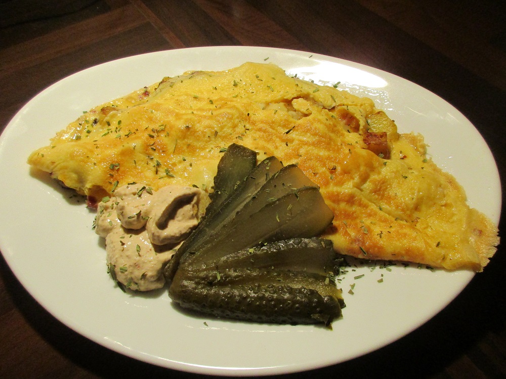 bauernfrühstück mit den "fast" letzten salz-dillgurken der saison, dazu ein dip