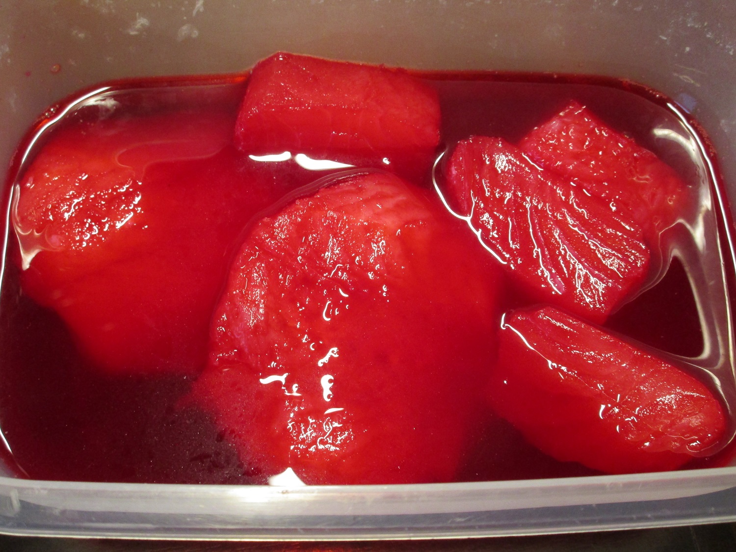 als erstes wurde etwas fischiges in rote bete saft gefärbt ( klappt prima ! )...