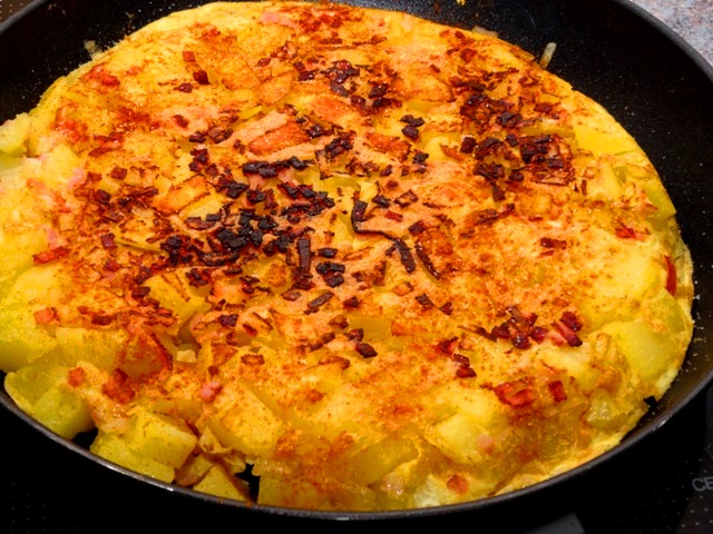 Auf dem Backpapier habe ich zuerst Parmesankäse verteilt, darauf schaumig gerührtes Ei und den ausgedrückten Spinat verteilt, nach 15 Minuten im Ofen dann vor dem Rollen mit Frischkäse bestrichen und mit Lachs belegt.