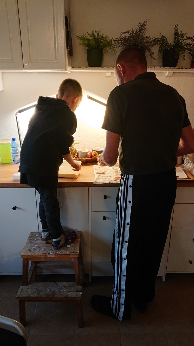 enkelchen wollte fischstäbchen essen...hat er bekommen - aber nur mit der voraussetzung zum selbstgebebastel...