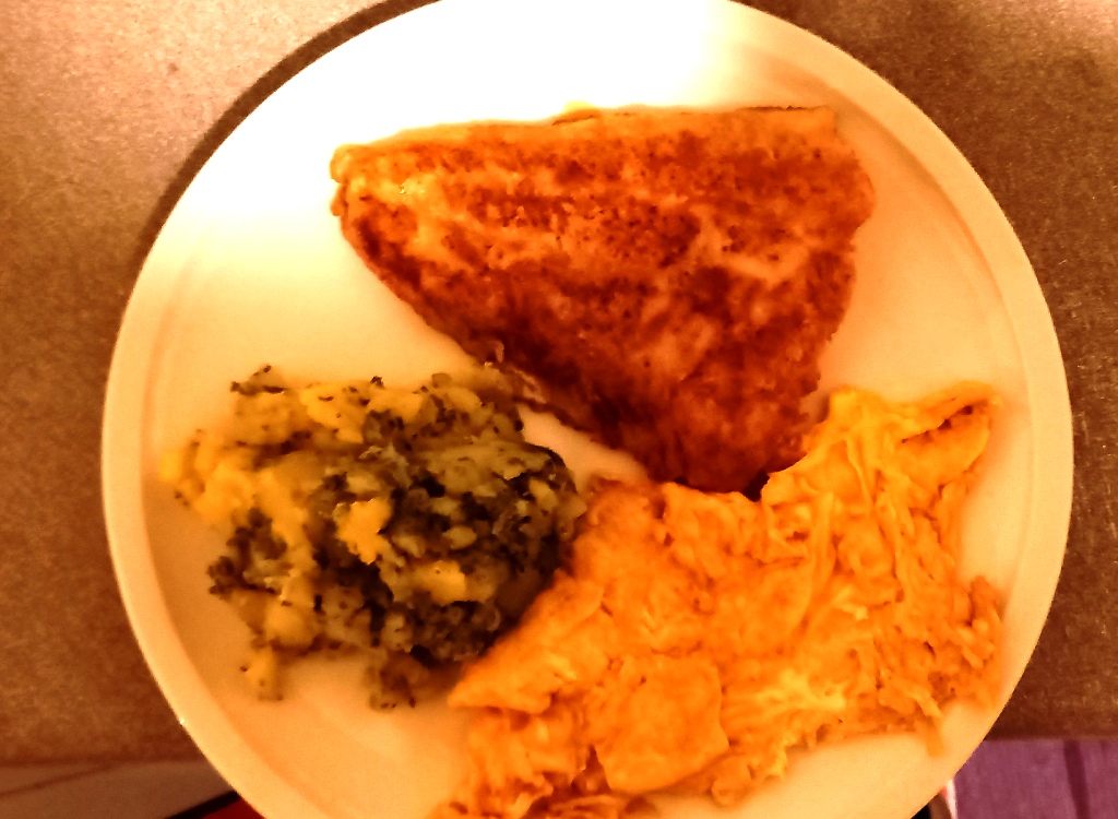 Einfach aber sehr Lecker...Köhlerfielet(nicht gekauft) in Mehl und Ei gewendet,Petersilienkartoffelstampf und Rührei.