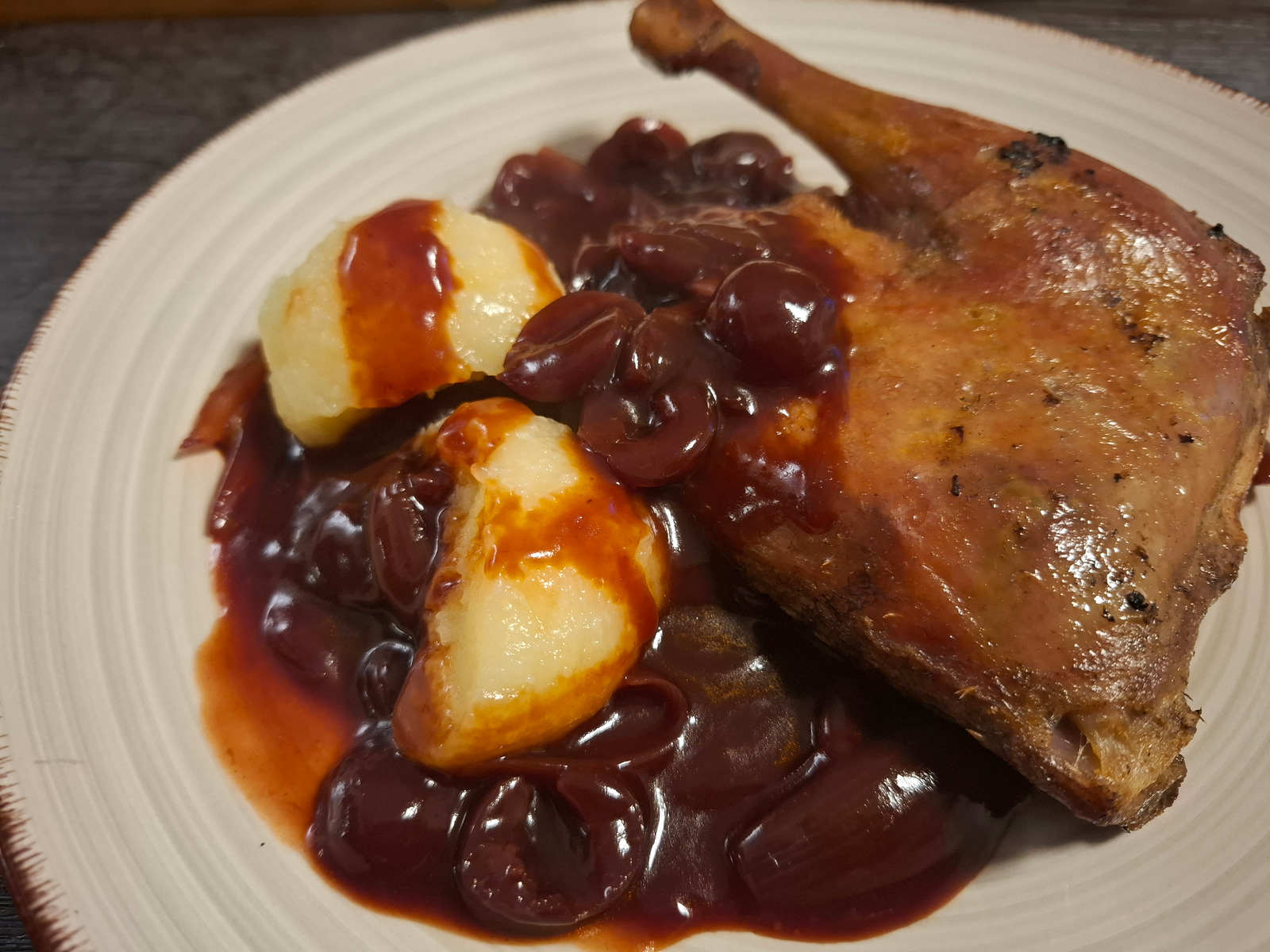 Soße ist schon mal fertig...Schalotte-Kirsch-Port-Rotwein