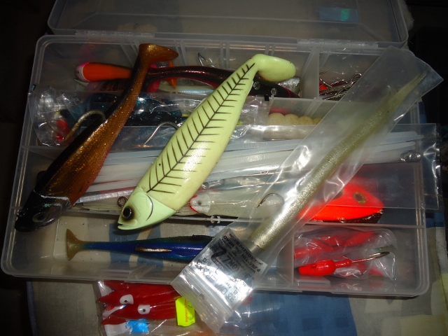 Ich konnte nicht anders und hab' mal alles zusammengesammelt, was in der Werkstatt so rumfliegt. Au weia. Erstaunlich, was über die Jahres so zusammenkommt, wenn auch die bessere Hälfte die Flohmärkte nach Angelzeug durchstöbert (und z.B. mal eben 15 große Gummifische mitbringt!). Unten ein Bildchen; dazu kommen noch diverse kleine Pilker und jede Menge Vorfächer. Ich glaub', ich muss da mal was für Nautnes raussuchen...