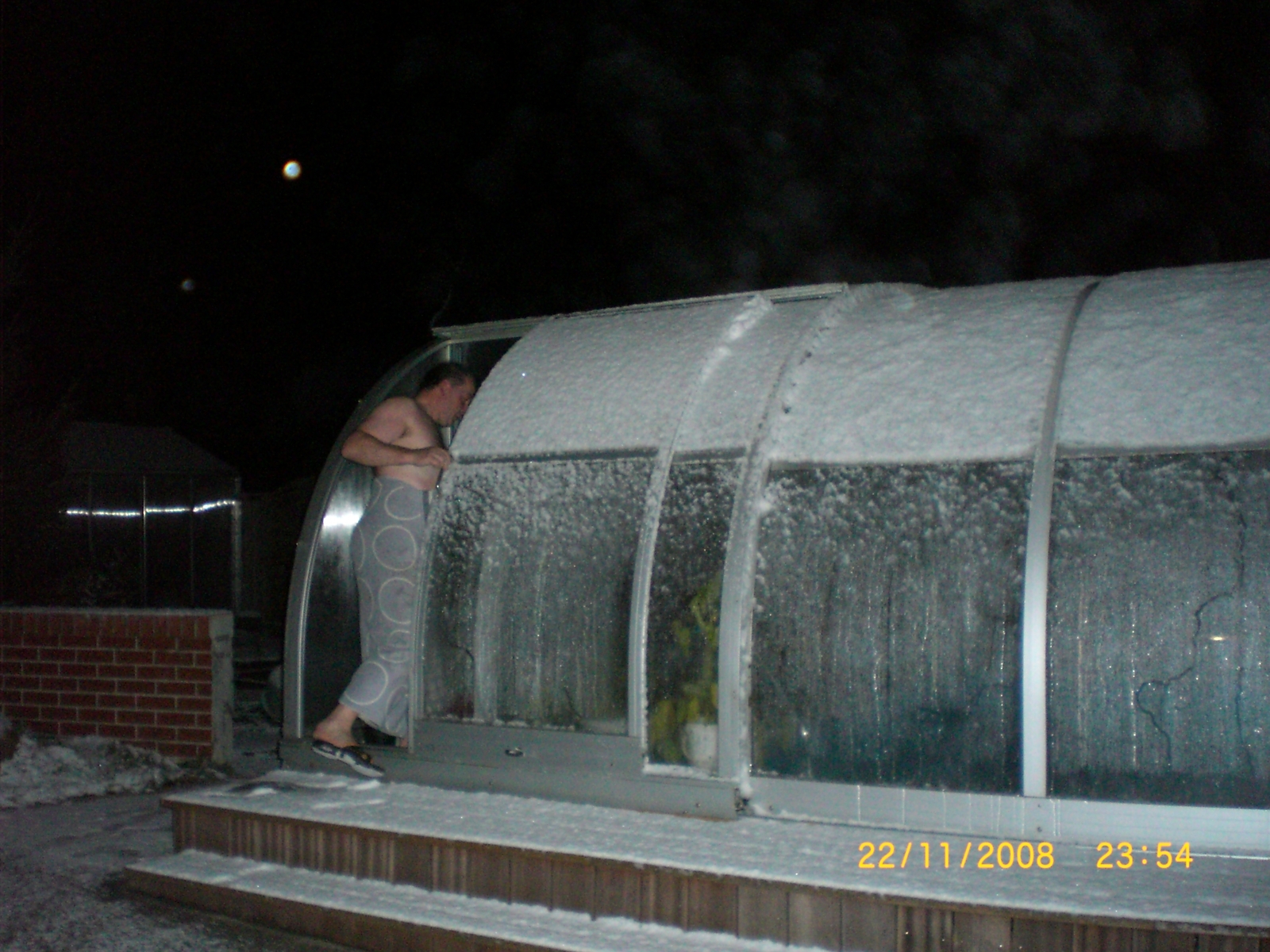 ...dann ist Saunatag. Außentemperatur -1,5 Grad,Schnee,