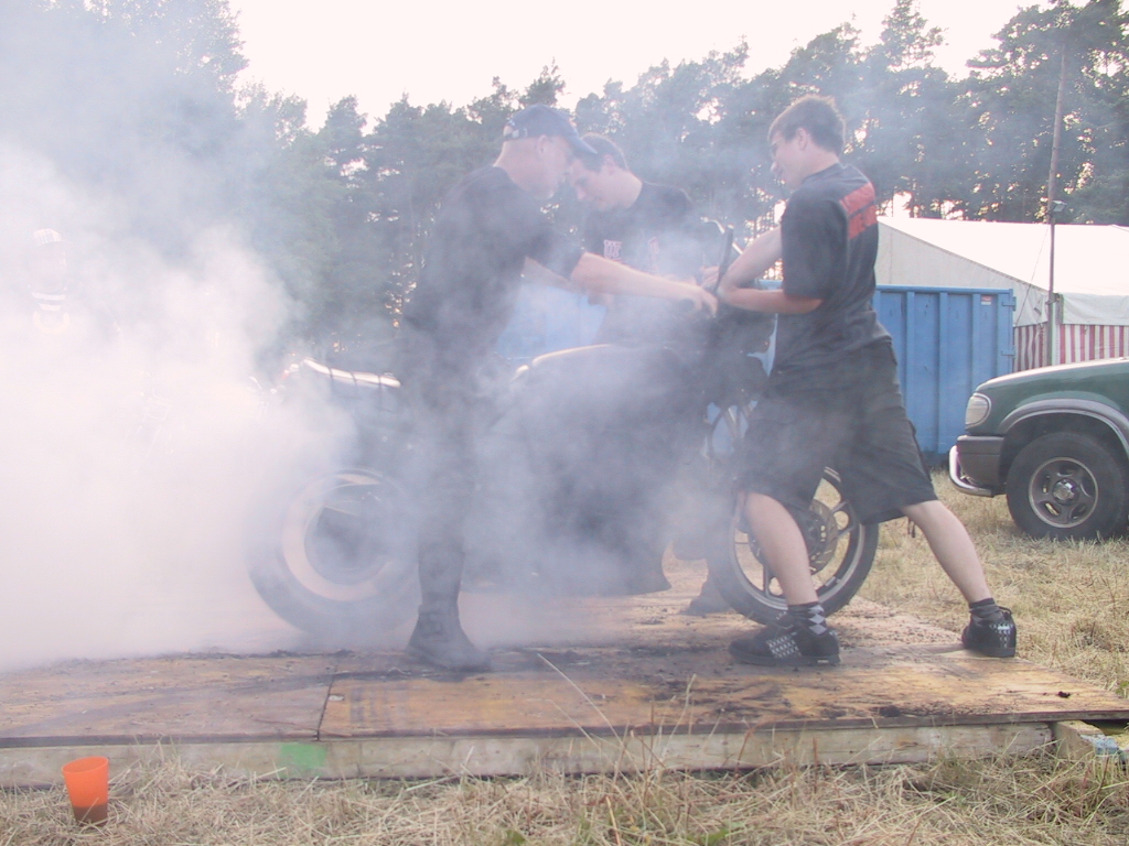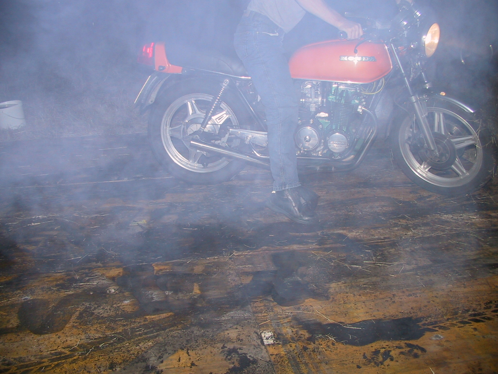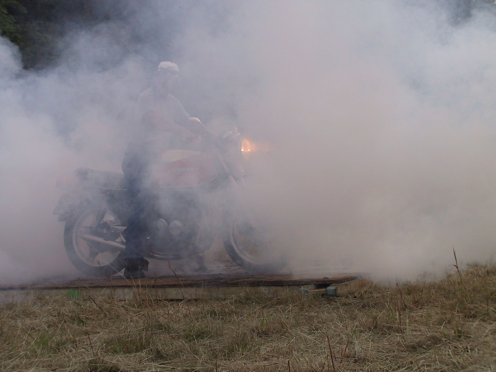 Und so kam es das Lutz sein Moped holte, sich auf die Brennplatte begab und die ersten Versuche startete. Am anfang noch mit Unterstützung:confused: