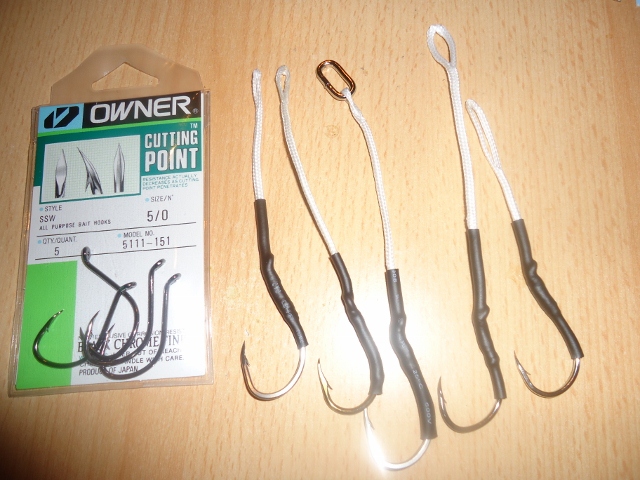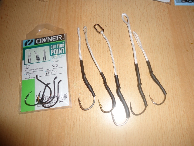 Solltest Du aber unsicher sein kannst du die Haken miteinem kleinen Gummi (ruhig ein altes) am Pilker fixieren. Beim Biss reißt dasGummi und der Haken ist frei. Wie gesagt,