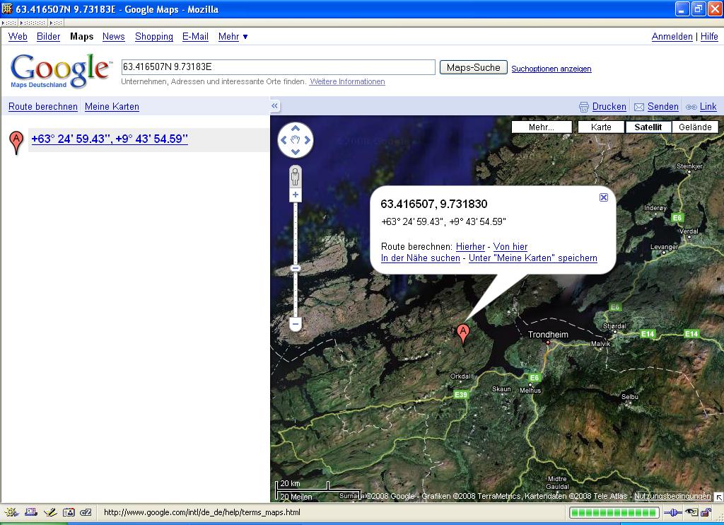 Na gut Masch1, versuchen wir folgenden Trick. du öffnest den von mir nachfolgend eingestellten Link. Dort klickst Du mal ungefähr auf die Bereiche wo Du geangelt hast - Du kannst in die Karte reinzoomen - und schreibst Dir die Koordinate auf. Oder Du machst einen Screenshot davon. Oder Du nimmst die eine Seekarte von dem Gebiet und gibst die Koordinate hier "nach alter Väter Sitte" in Grad, Minuten und Sekunden an. Dann vergleichen wir mal die Koordinaten und versuchen das Rätsel zu lösen.