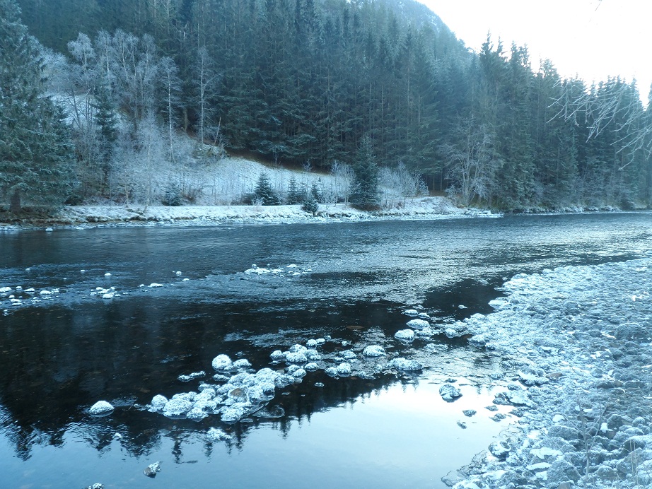 Ich war dann gestern mit Willy (unser Jacky) nochmal kurz vor die Haustüre gassigehen, hab paar Bilder geknipst und schnell wieder rein in die warme Stube. Heut gehn wir dann nochmal Teita zu den Seen um einiges über die Grossforellen herauszufinden.